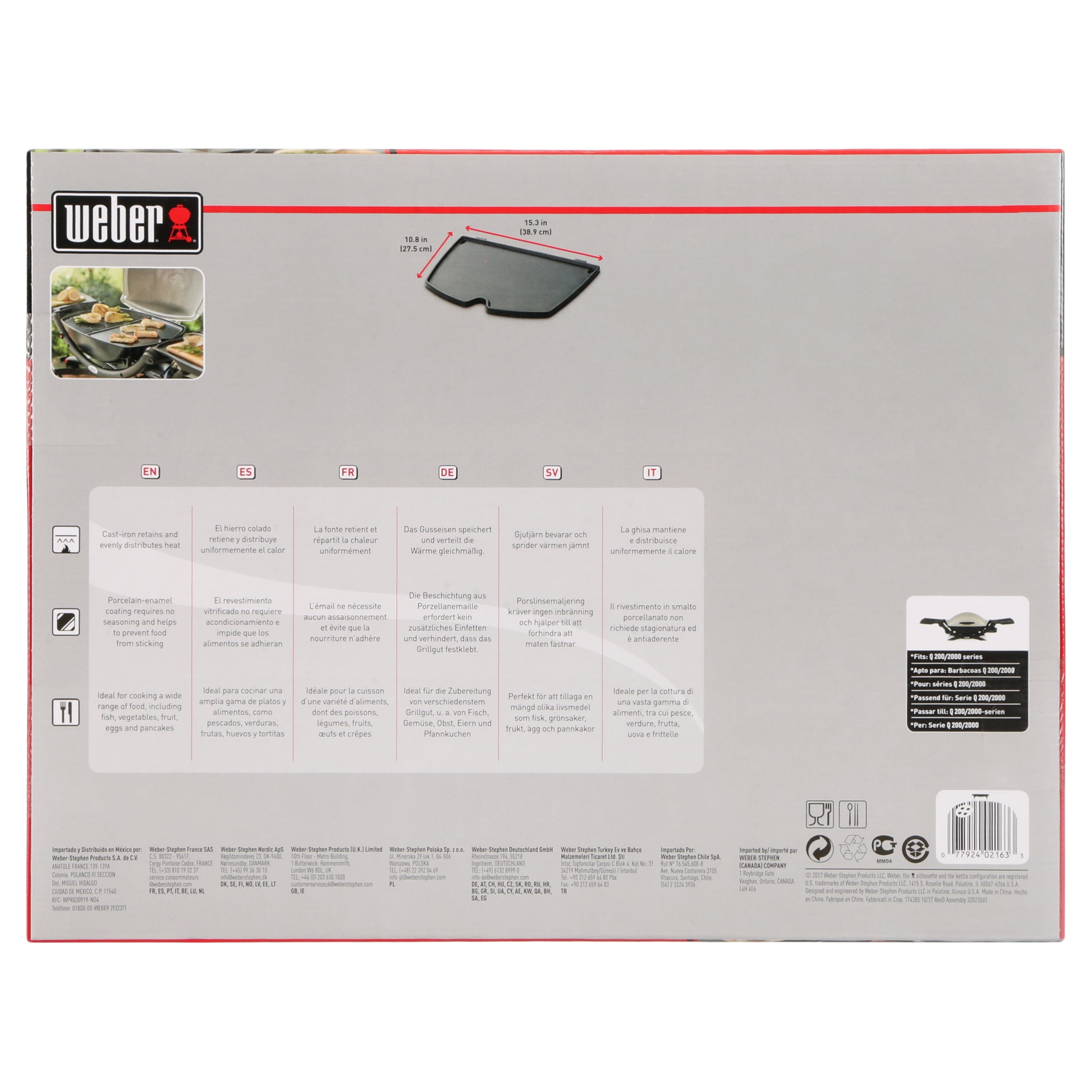 Heavy-duty porcelain-enameled cast iron Designed to replace one of the grates in the Q 2000 series gas grill Cast iron grill griddle fits Q 2000 series gas grills Superior heat retention No seasoning of the cast iron Raised edges keep your food on the griddle 2-year warranty Model# 6559