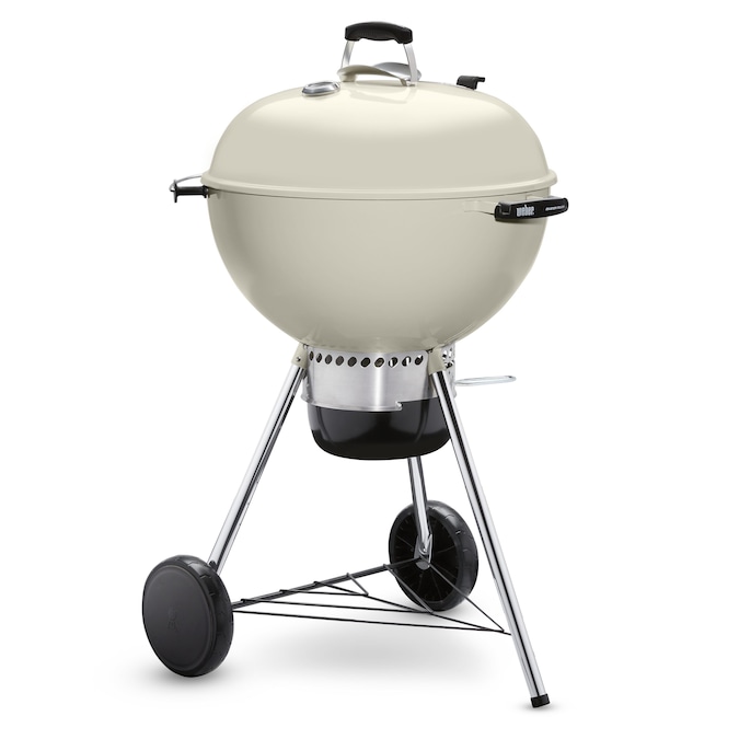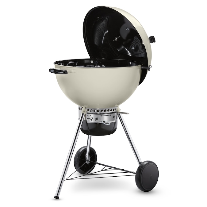 - Weber Master-Touch 22 inch charcoal grill in ivory with 1-touch cleaning system includes 3 aluminized steel rust-resistant dampers, which regulate airflow while cooking and sweep ash after grilling