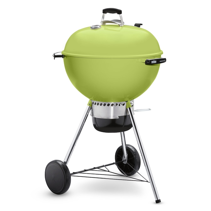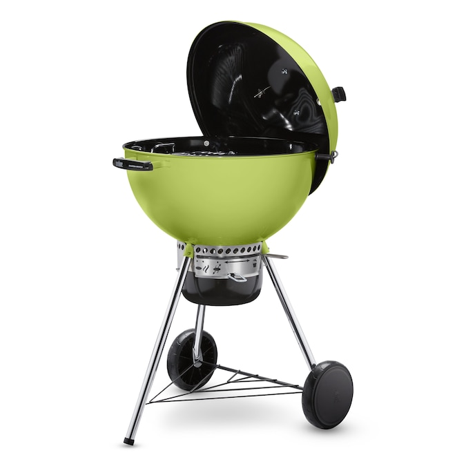 - Weber Master-Touch 22 inch charcoal grill in spring green with 1-touch cleaning system includes 3 aluminized steel rust-resistant dampers, which regulate airflow while cooking and sweep ash after grilling