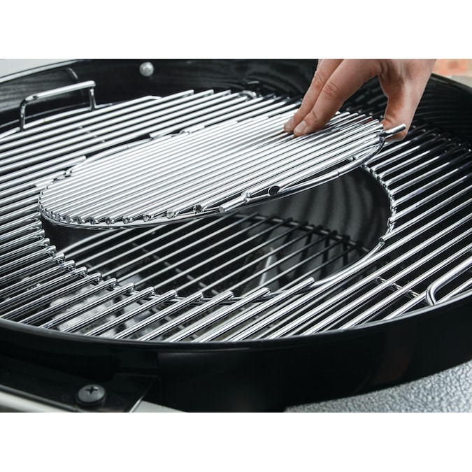 - Cooking grate is compatible with GBS inserts (sold separately) and is hinged for easily adding charcoal while grilling
