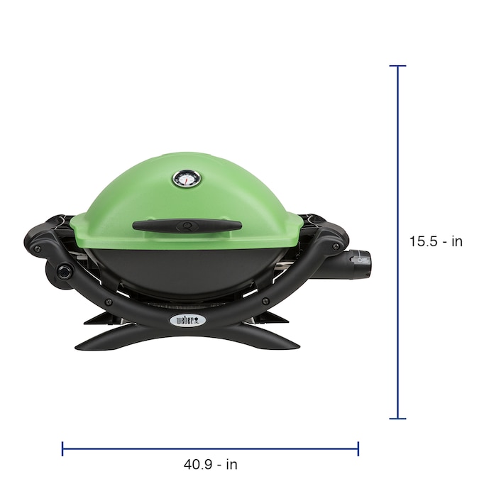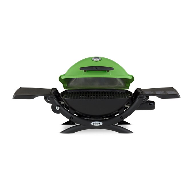 Great for tailgates, picnics, camping or any time you’re on the go, this Weber Q 1200 portable gas grill is the perfect size to travel with you. With just the push of a button, the electronic ignition has your grill fired up and ready to cook in minutes. The Q 1200 comes with big grill features, like two fold-out side tables for more prep space, and a built-in thermometer to monitor the inside temperature. With 189 Sq. In. of cooking space, having enough room to grill your favorites is never an issue. Whether it’s chicken, hot dogs or even a small roast, you can prepare it all on this grill. Its stylish, green lid will make a statement wherever you are, but the tasty treats will be what everyone raves about.