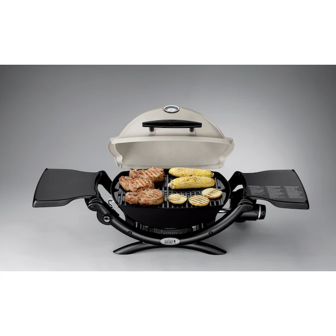 Great for tailgates, picnics, camping or any time you’re on the go, this Weber Q 1200 portable gas grill is the perfect size to travel with you. With just the push of a button, the electronic ignition has your grill fired up and ready to cook in minutes. The Q 1200 comes with big grill features, like two fold-out side tables for more prep space, and a built-in thermometer to monitor the inside temperature. With 189-sq in of cooking space, having enough room to grill your favorites is never an issue. Whether it’s chicken, hotdogs or even a small roast, you can prepare it all on this grill. Its stylish, silver lid will make a statement wherever you are, but the tasty treats will be what everyone raves about.