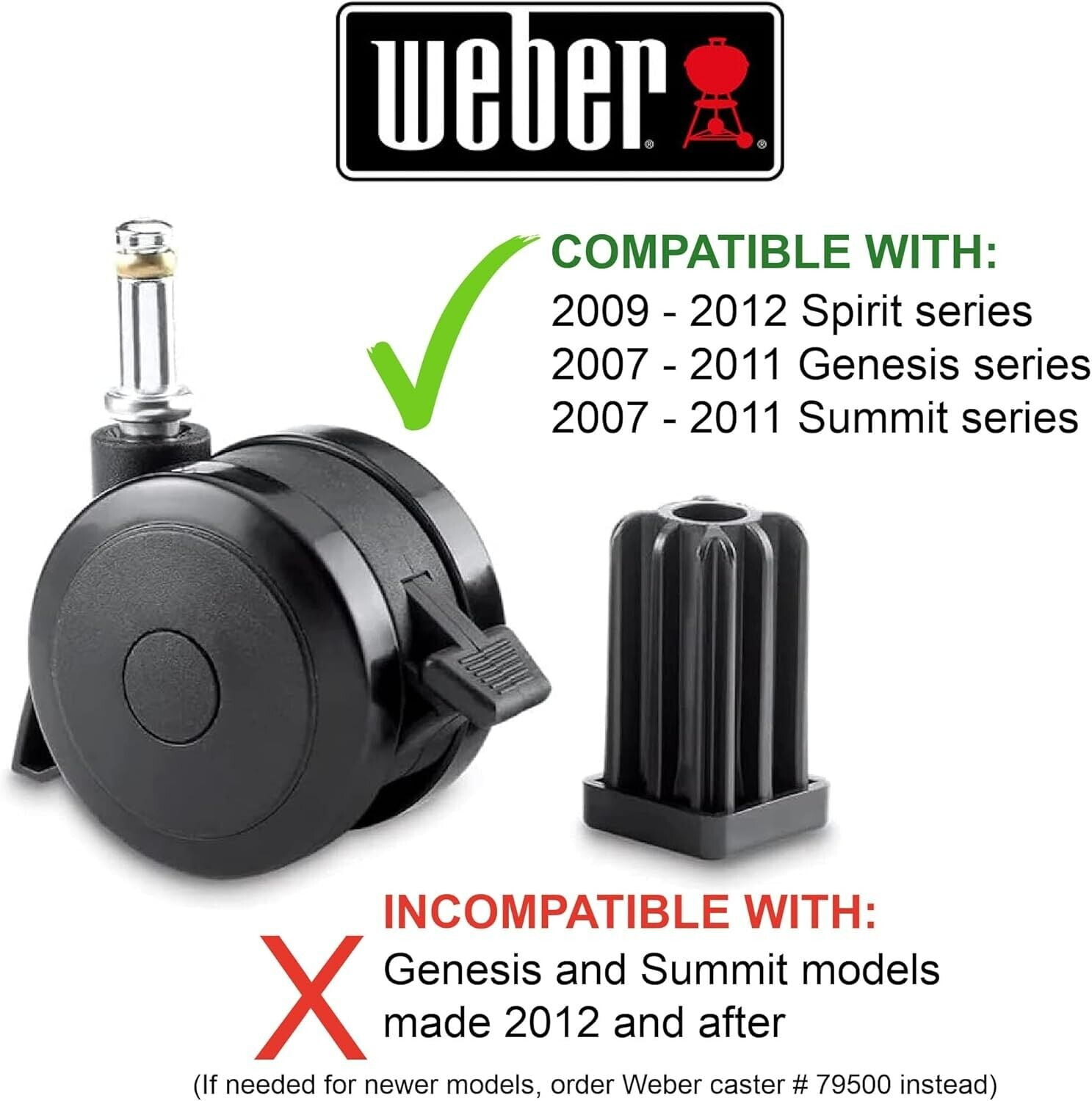 Weber Replacement Caster Wheels for Grills, Black Multipack Fits many Weber grills; use part number and description to determine fit Replaces Weber part number: 70360 Includes 2 caster wheels and 2 inserts Compatible with various Weber models including Summit S 420 Summit E 420 Genesis 310 and more Designed for easy installation and reliable performance