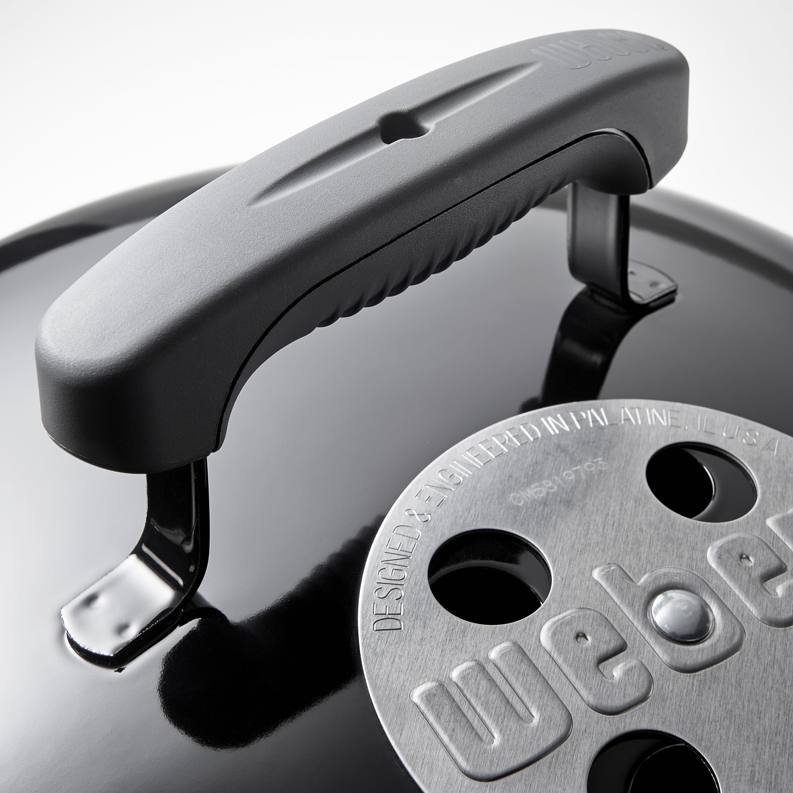 Weber Smokey Joe Premium 147 square inch cooking area Plated steel cooking grate Porcelain-enameled bowl and lid Rust- resistant aluminum damper One glass – reinforced nylon handle Tuck-N-Carry lid lock allows for carrying, also lowers to double as lid holder