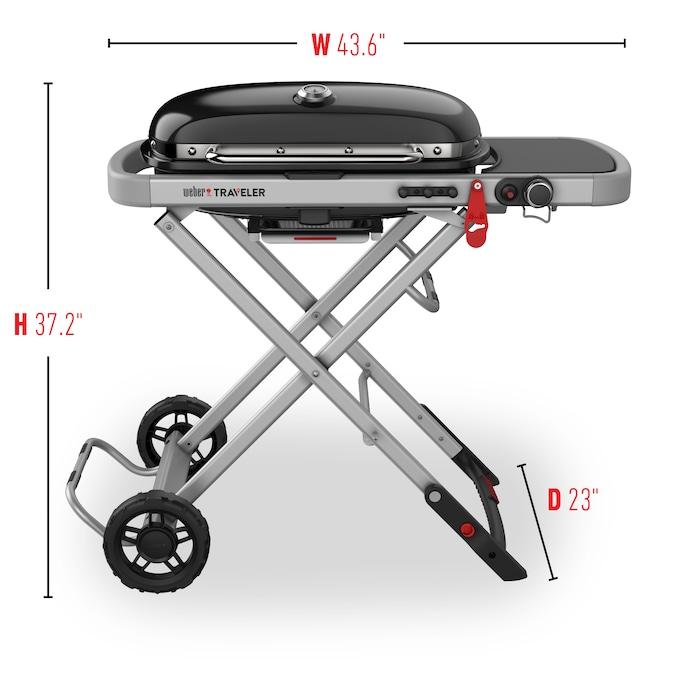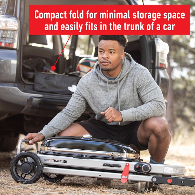 - Weber Traveler portable propane gas grill takes up minimal space in your garage and designed to fit easily in the trunk of a car
