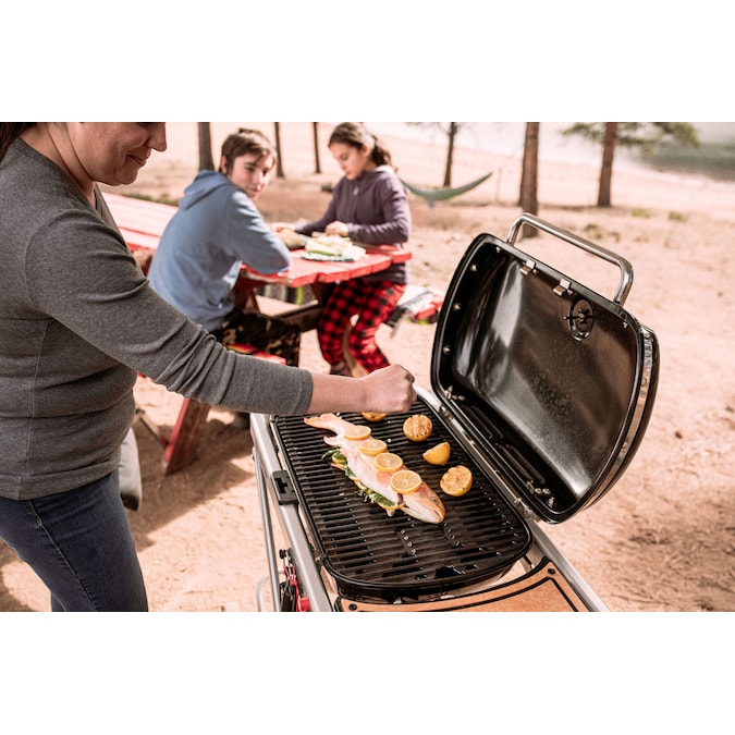 - Convenient propane gas grill features like tool hooks, side table and built-in thermometer to make grilling on the go even easier