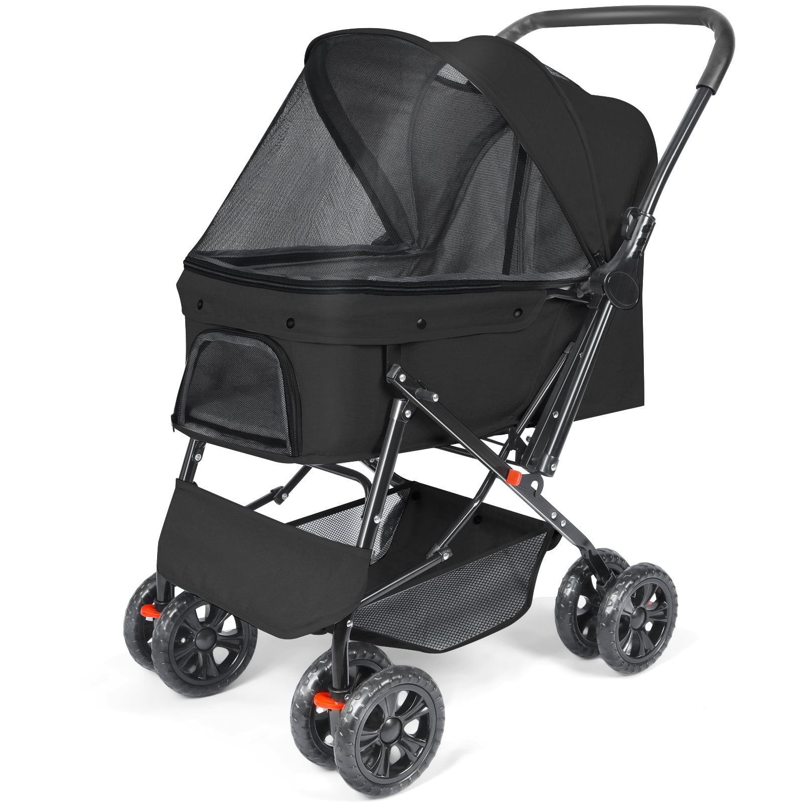 -About Wedyvko Pet Stroller The Wedyvko Pet Stroller is designed with your furry friend’s comfort and convenience in mind. Whether you’re going for a leisurely stroll or running errands, this premium dog stroller offers a safe and comfortable space for your pet. With its reversible handle, you can easily adjust the direction of the stroller to suit your preference. Whether you want your pet to face forward and enjoy the view or face you for some extra bonding time, the choice is yours. This stroller features a sturdy and durable construction, ensuring long-lasting use. The folding design allows for easy storage and transportation, making it ideal for both indoor and outdoor adventures. Take your pet along on walks, trips to the park, or even shopping sprees without any hassle. We understand the importance of storage when you’re out and about with your pet. That’s why our stroller comes with a large storage basket underneath. It provides ample space to carry your pet’s essentials, including water bottles, treats, toys, and more. The Wedyvko Pet Stroller is thoughtfully designed to prioritize your pet’s safety. The mesh windows not only provide excellent ventilation but also protect your pet from insects and bugs. The sturdy brakes ensure stability and security, giving you peace of mind during your outings. Invest in the Wedyvko Pet Stroller and give your pet the comfort and convenience they deserve. Whether you have a small or medium dog, a cat, or even a rabbit, this stroller is suitable for pets of various sizes. Let your furry friend join you on your adventures in style and comfort. -Specifications: Color:Black Frame Material:Alloy Steel Product Dimensions:40″L x 21″W x 30″H Maximum weight recommendation:44 Pounds -What’s in the box 1XPet Dog Stroller 1XInstallation Manual