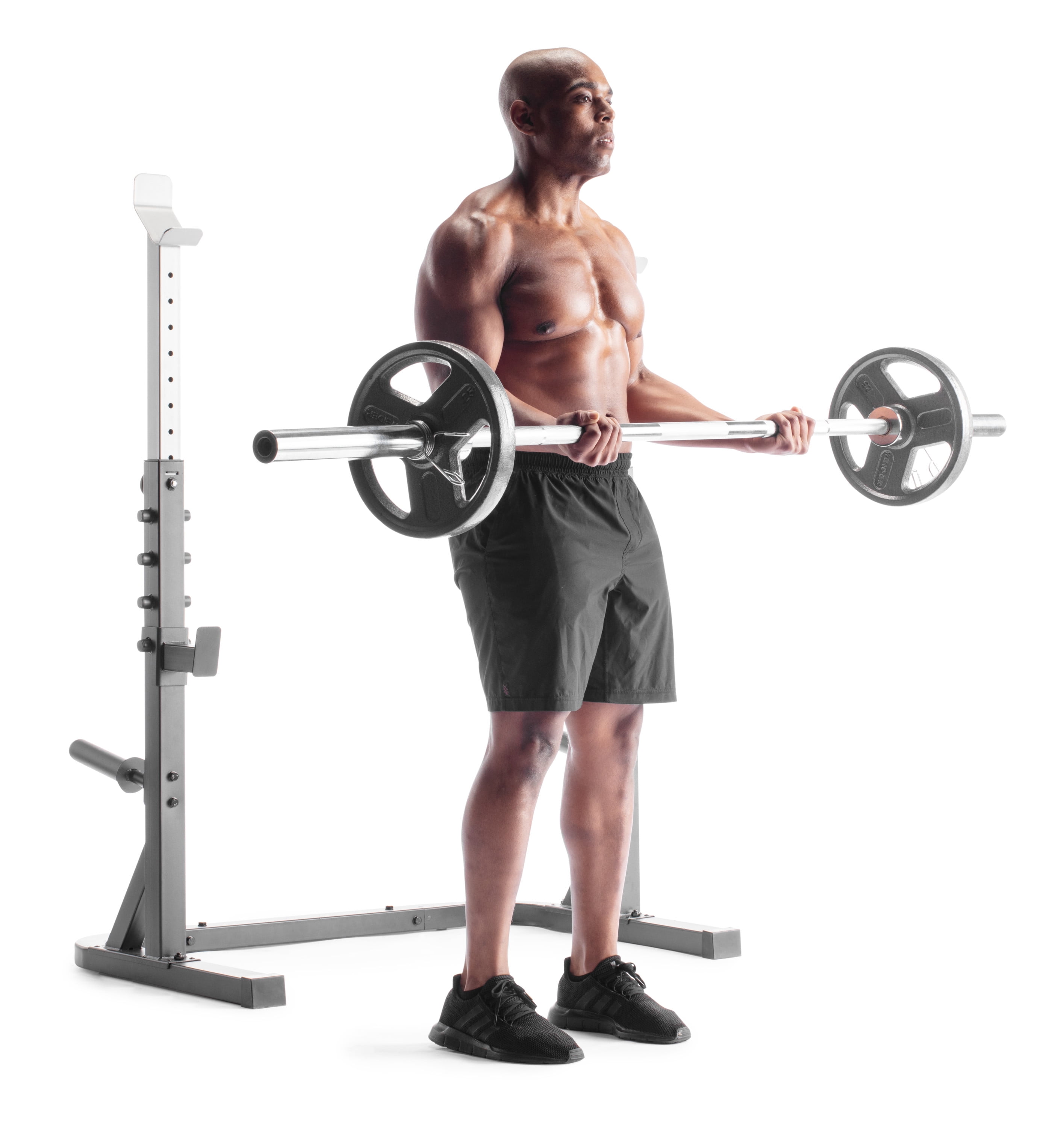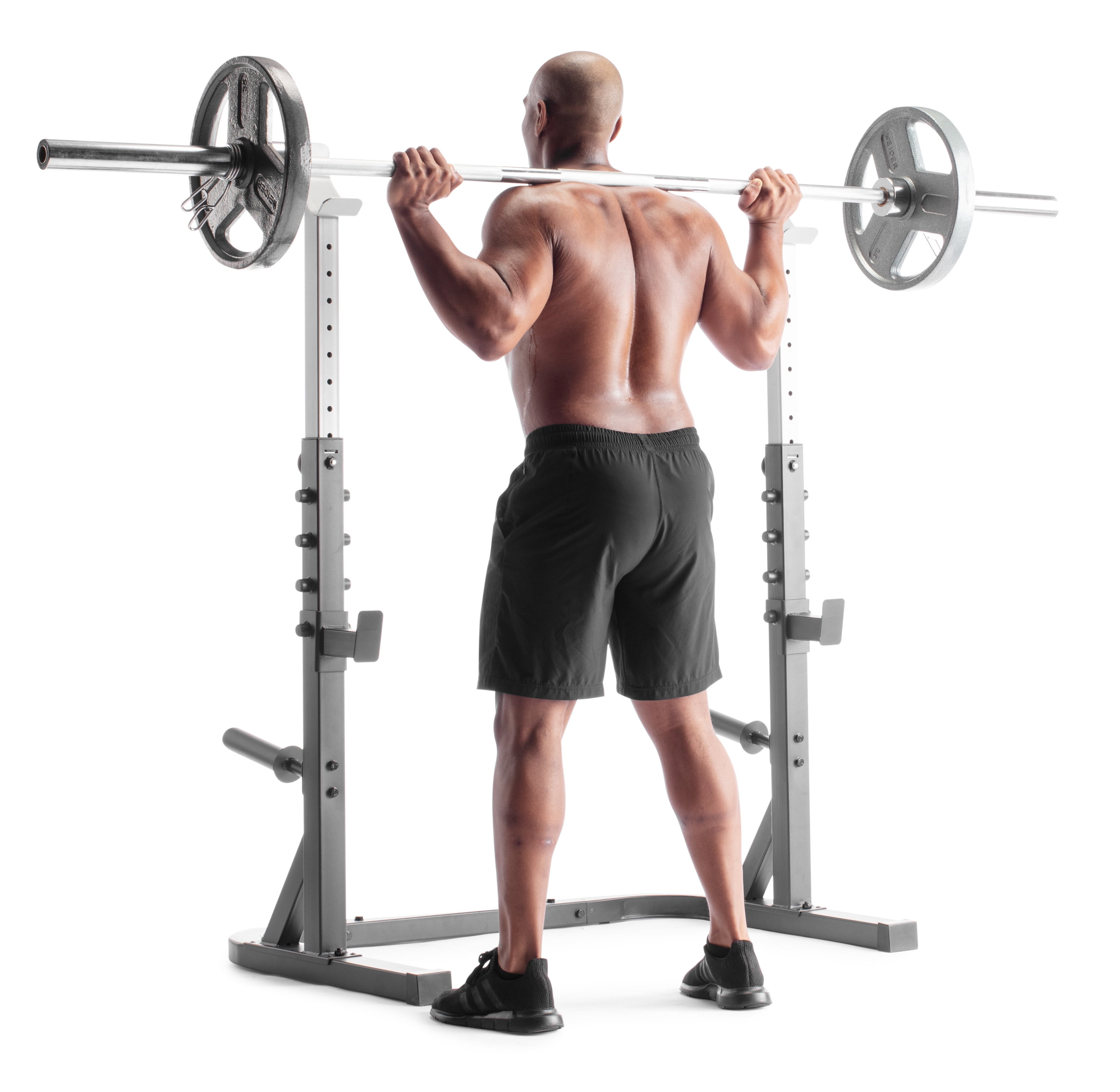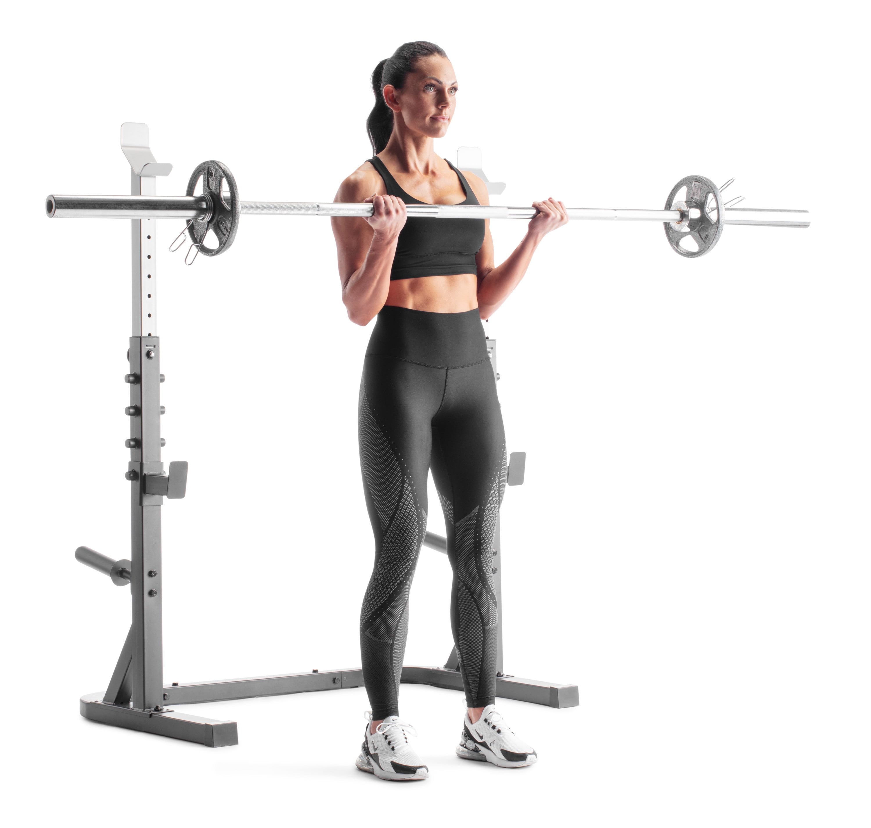 Independent Squat Rack Perform squats, rack pulls, deadlifts, and a variety of other compound exercises with this powerful steel squat rack Use with the Attack Olympic Bench (sold separately) to engage your chest with a variety of other compound exercises Adjustable Spotting Arms Prioritize your safety, especially when lifting alone. These long spotting arms are designed to adjust to your needs and catch any weight that might slip out of your hands or off of your shoulders mid-set Olympic-Sized Uprights Modify the Weider Attack weight rack to fit your frame, lifting style, and exercise preferences for a comfortable and secure workout in your home gym These durable steel uprights can support up to 310 pounds of Olympic weight, which is sold separately Integrated Weight Plate Storage The Attack Olympic Squat Rack features two rear-facing storage pegs for your 2″ Olympic weight plates, which are sold separately 310 Lb. Total Weight Capacity Weight Plates Sold Separately 90-Day Parts & Labor Warranty Visit for more warranty information Footprint: 41 in. H x 25.5 in. W x 70 in. L Model #: WEBE29120