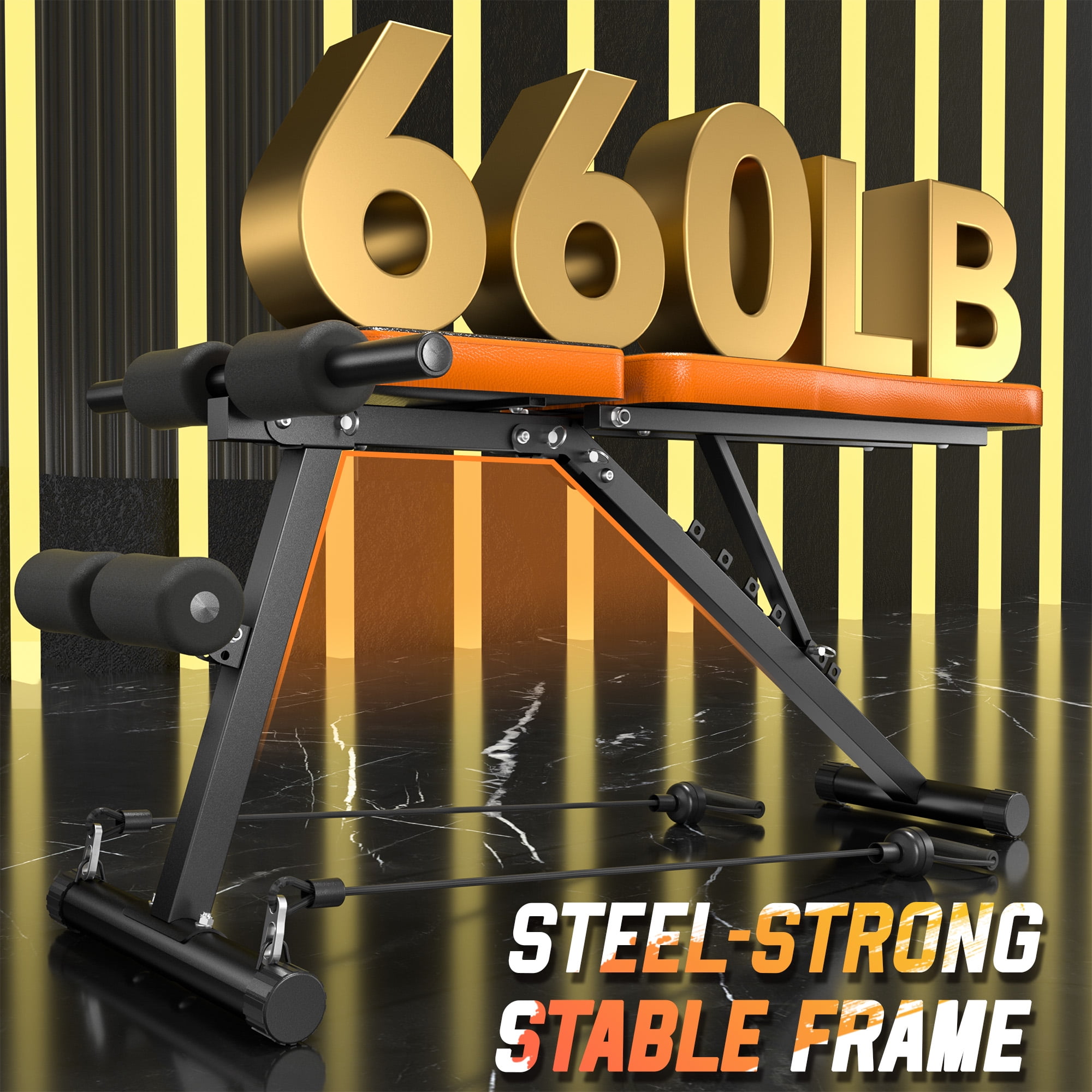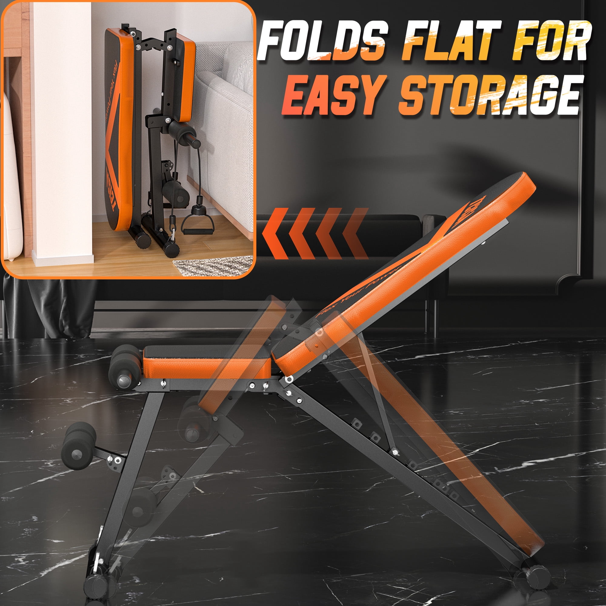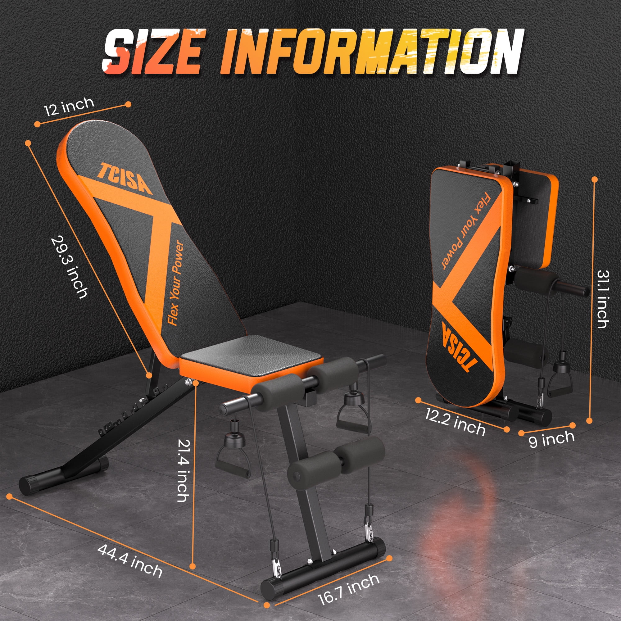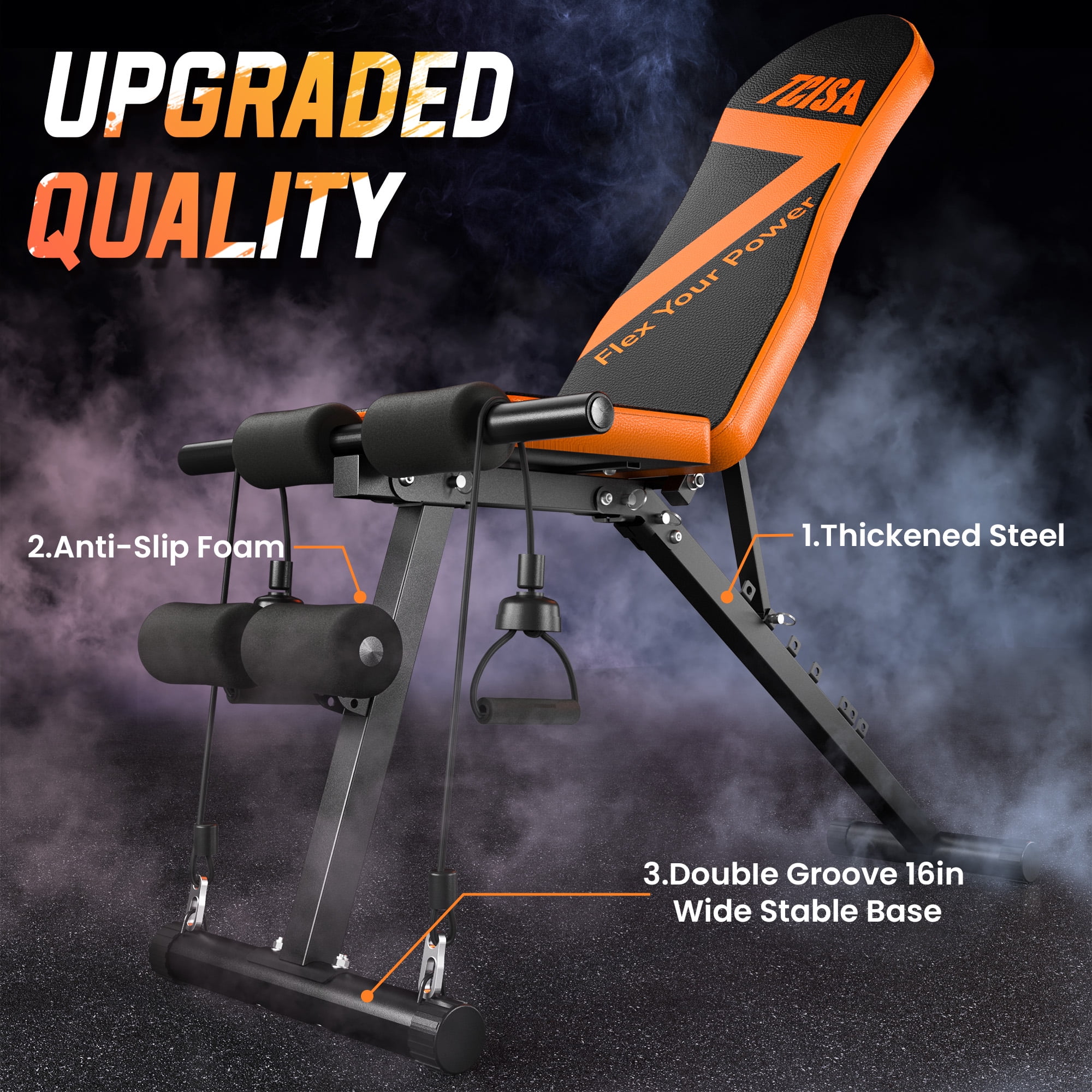 Weight Bench, TCISA Adjustable Weight Bench, Strength Training Benches For Full Body Workout & Home Gym with Resistance Bands