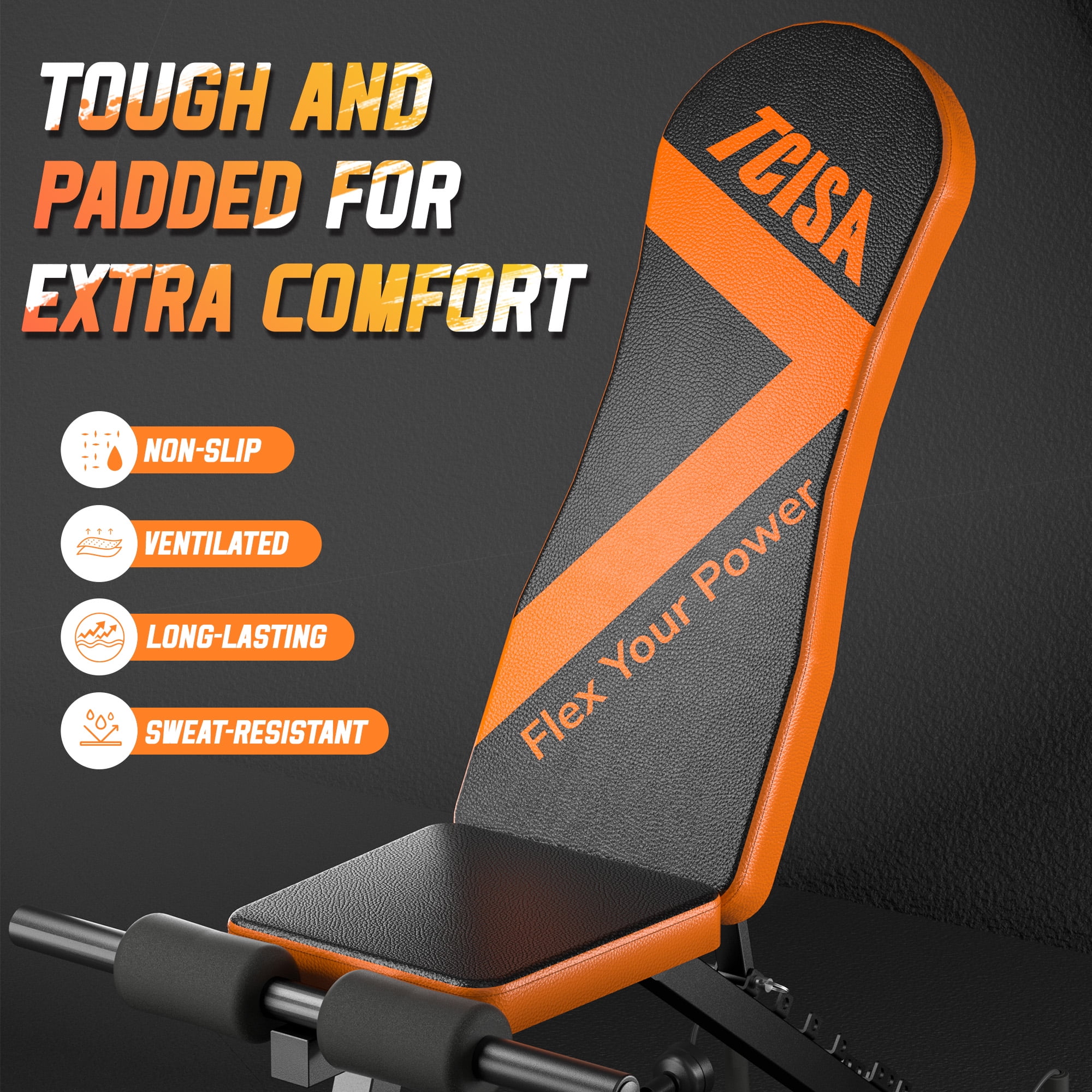 Simplicity and Functionality: The Tcisa weight bench is designed for simplicity and functionality, making it ideal for both lightweight daily home workouts and high-intensity strength training. Its user-friendly design allows for a variety of strength exercises to be performed effortlessly at home. Durability and Stability: This fitness bench features a stable base and a sturdy frame constructed with strictly controlled high-quality steel. The carefully designed trapezoidal structure, 16-inch wide legs, double grooves, and reinforced knobs provide a weight capacity of 660LBS, ensuring solid and secure use for years to come. Adjustable Angles for Full-Body Workouts: The Tcisa weight bench allows for easy adjustment of the backrest from 63° to -30°, enabling exercises such as seated dumbbell press and -27° decline sit-ups. By lifting the support bar from the double grooves, you can quickly switch between upright, incline, flat, and decline modes, targeting all major muscle groups. Folding and Compact Design: The bench can be set up from the box to a functional folding weight bench in just 5 minutes. When folded, it is super compact and easy to move around, taking up minimal space for storage, and is always ready for your home gym workouts. Utility and Longevity: The Tcisa home workout bench is suitable for everyone. Its wear-resistant leather, thick cushioning, and double fine stitching ensure durability for years of exercise. Adjustable foot support, high-density foam, and minimal gaps between cushions offer added comfort during workouts.
