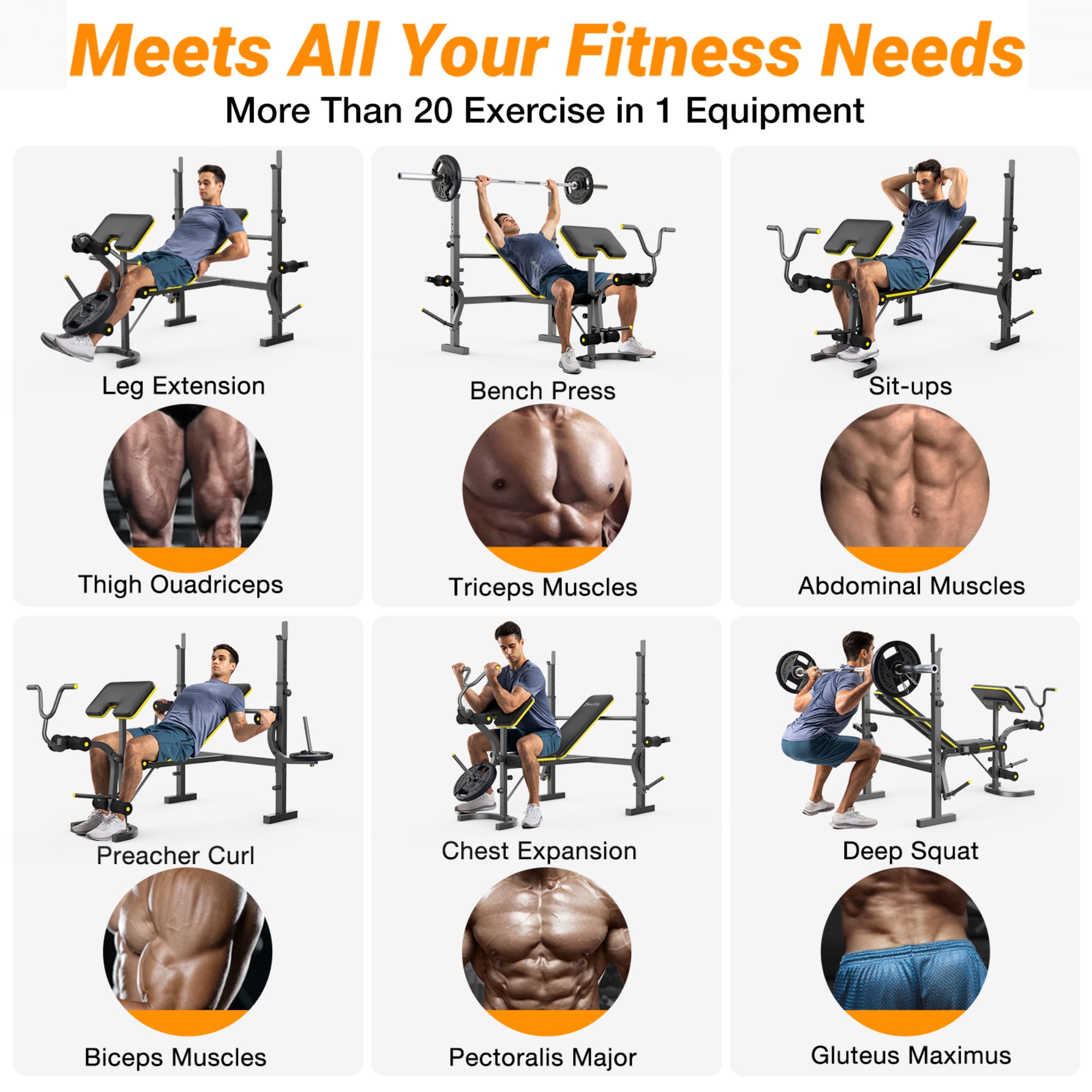 Weight Bench,Blacksmith 6-in-1 Adjustable 1100 lbs Load Bearing Weightbench Set with Squat Rack, Leg Developer, Preacher Curl, Butterfly Arms