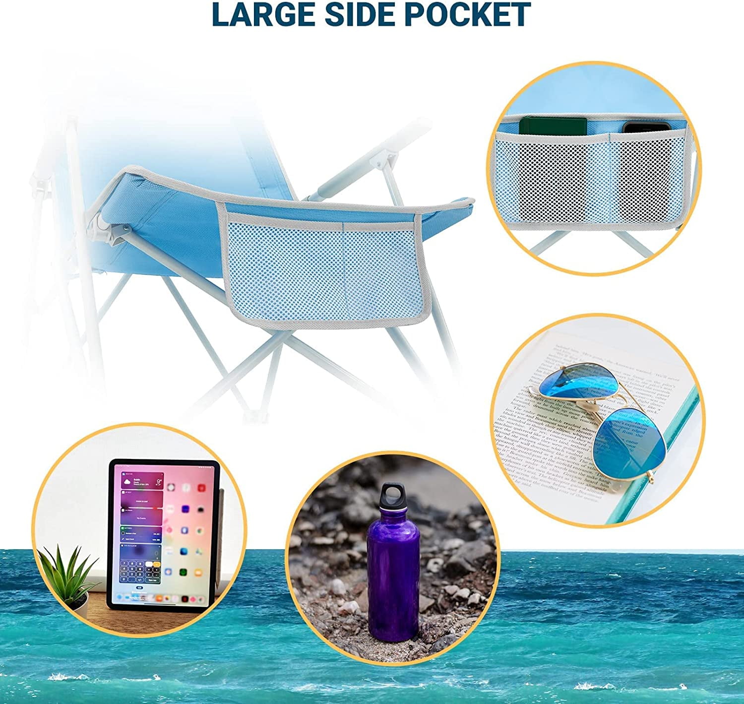 【Lightweight and Portable】Beach chair effortlessly unfold, set up, and fold in seconds. Includes a sturdy nylon bag for easy carrying and storage. Take this camping chair with you anywhere, at any time. Dimensions when unfolded 22.8 x 31.8 x 33.8in. 【‌Durable Materia】Folding camping chairs constructed from heat resistant Oxford cloth and support frame structure, max load 265 lbs, steel pipe bracket, spray plastic treatment, corrosion prevention, It is also tear resistant and abrasion resistant for long-lasting use. 【Ergonomic Backrest Design】The high back widened oversized camping chair features a fully support the body, high backrest design fully support the backrest, provides an extra level of support and relaxation to the neck, armrest structure sandwich cotton, support the arm. 【Large Storage Space】This camping chair for adults has all the storage you need. This chair features a huge magazine mesh pocket and a cup holder with a Oxford fabric bottom. 【Fully Padded Luxury】Our High Back Camping Chair is designed with a fully padded back and seat armrest to ensure optimal comfort. Thickened cotton padding makes our chair backs more comfortable than others. Make every outdoor moment a comfortable. Ideal for camping, picnics, fishing, hiking, travel, garden, beaches, barbecues, concerts, and more.