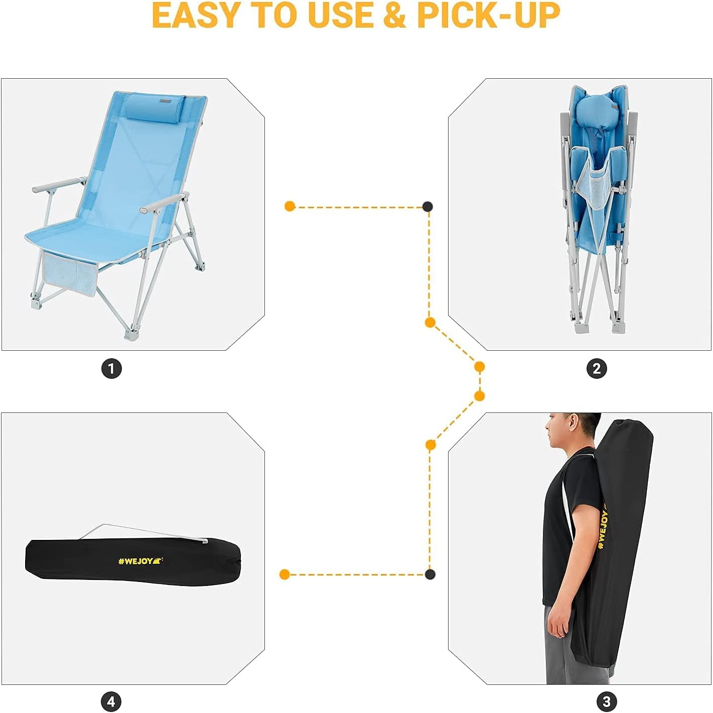 #WEJOY 2 PCS Beach Chair, High Back Folding Camping Chairs for Adults, Oversized Heavy Duty Outdoor Chair with Pocket for Outdoor, Max Load 265 lbs