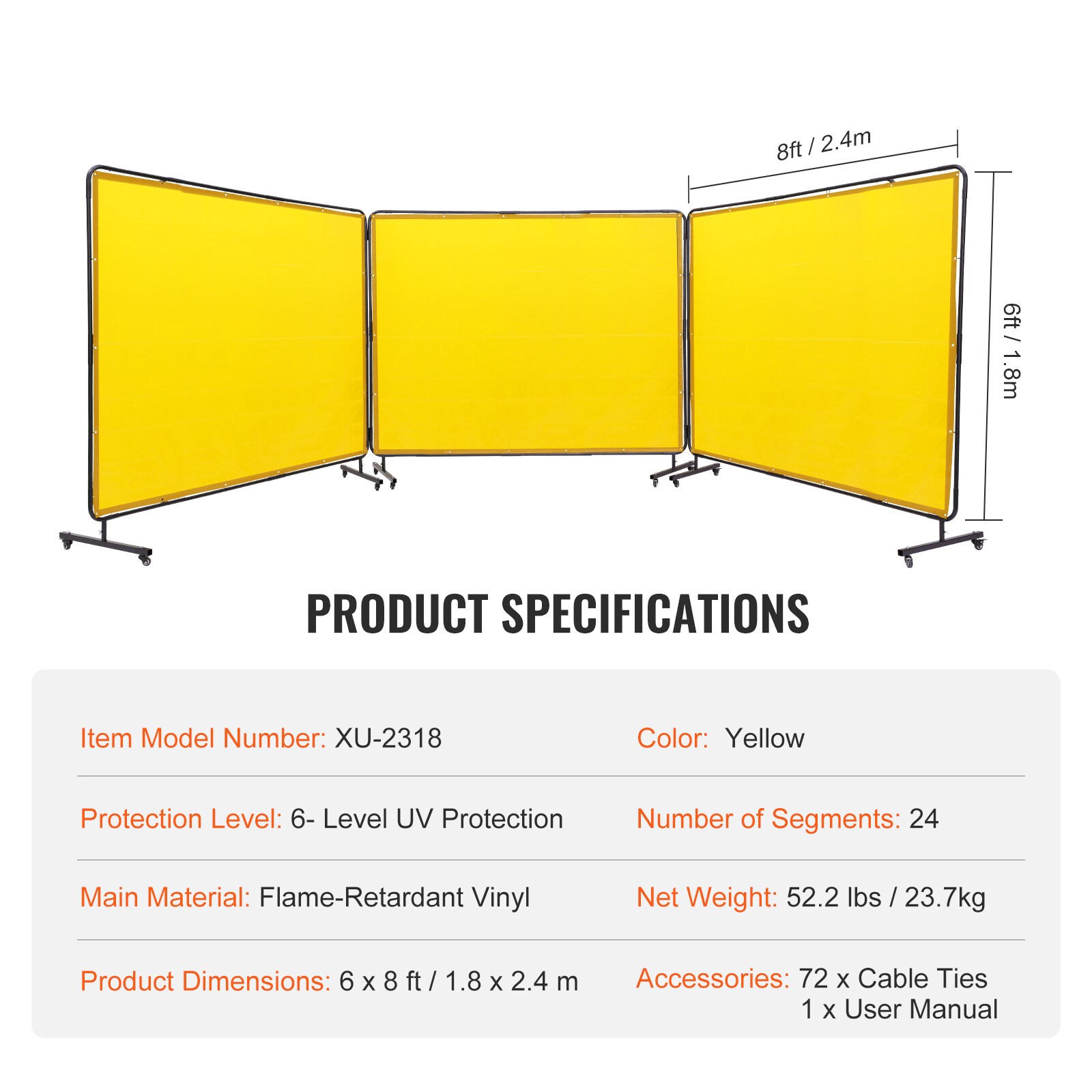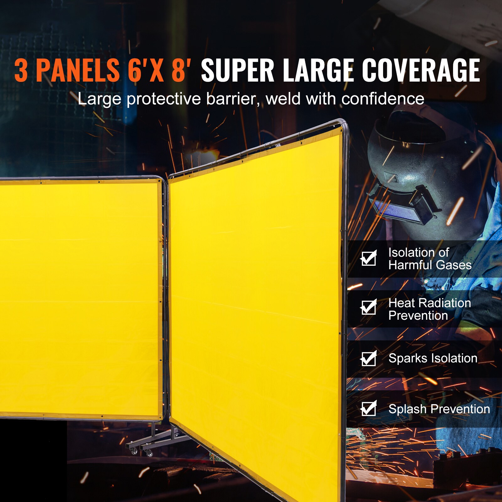Are you prepared to take your welding safety to new heights;Look no further; The SVOPES 3-panel 6 x 8 FT welding screen with frame is here to provide outstanding flame resistance, 6-level UV protection, a stable frame, and 12 x 360° rotational wheels; It’s the ideal choice for a secure and productive workspace.