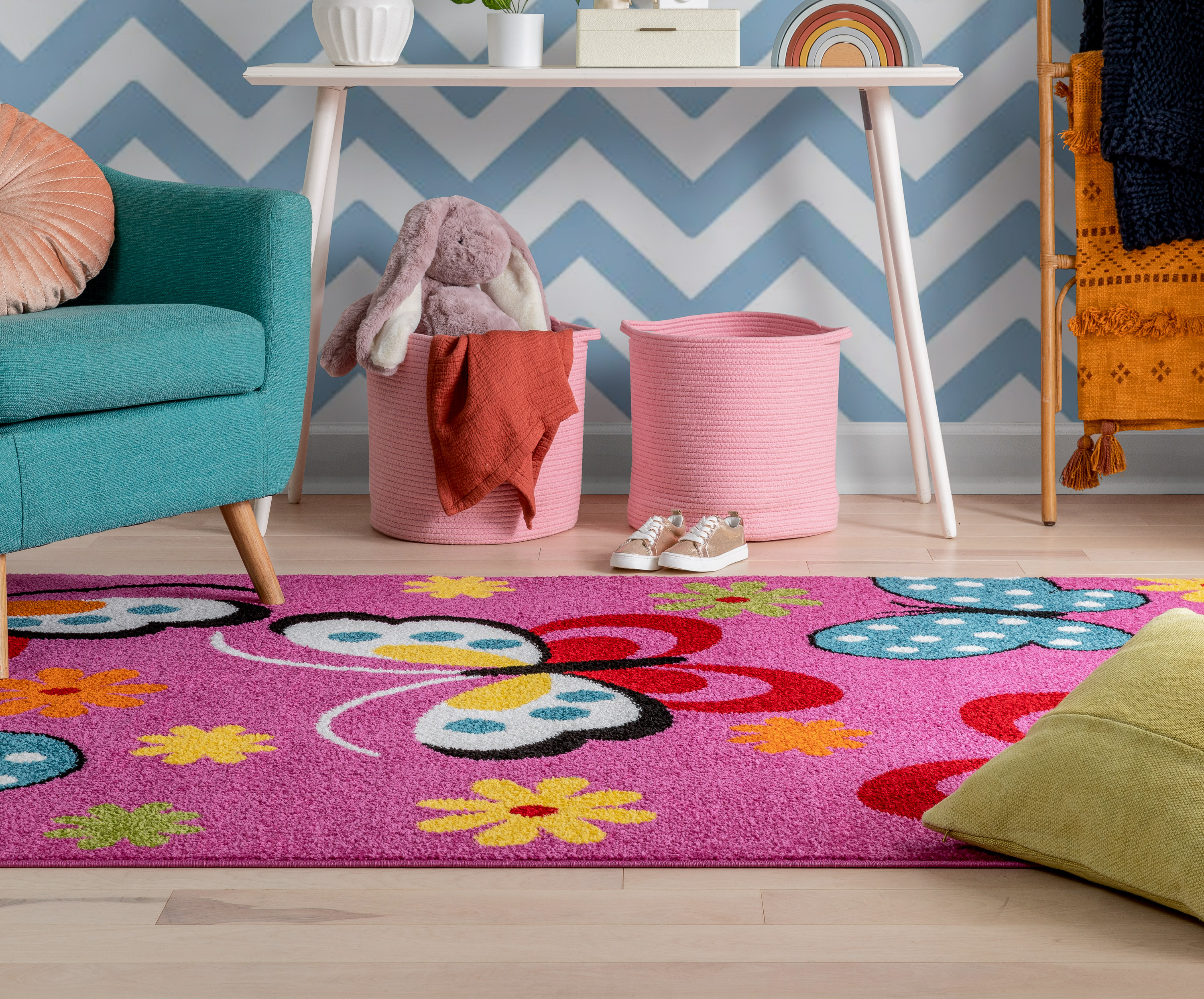 Well Woven 09304 Daisy Butterflies Kids Rug, Pink – 3 ft. 3 in. x 5 ft.
