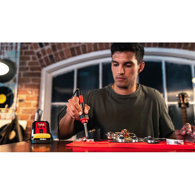 Weller 70 Watt Digital Soldering Station is highly efficient and flexible for all of your soldering tasks, with a compact design that takes up far less space. The station includes a precise and adjustable temperature control that heats up in only 15 seconds, memory function for preset temperatures, and an energy saving standby mode. With its ergonomic molded pencil grip that provides you with the comfort, precision and control you need, you have the ability to work at your best, anytime, anywhere