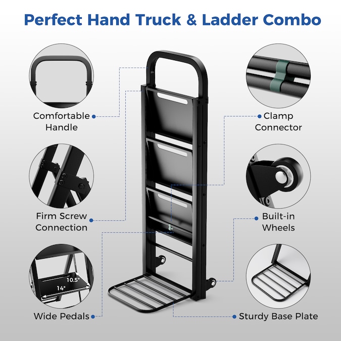 • 2 in 1-design: combines the convenience of a ladder and a hand truck in one, maximizing efficiency and versatility for various tasks