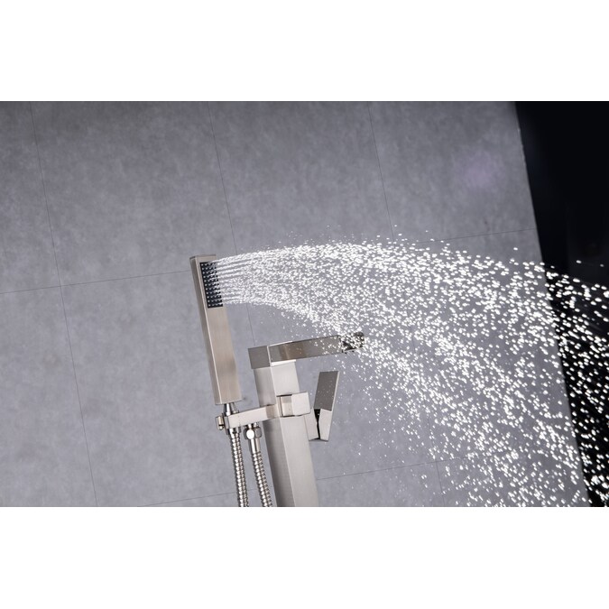 With its minimalist design, this contemporary tub faucet is the perfect addition to your modern master bathroom. Constructed from lead-free solid brass, this tub faucet is made for safe and long-lasting service. Come with a 360 degree swivel high arc spout, it creates a soothing waterfall effect when filling your tub quickly for a comfortable soak. A hand shower with a flexible hose offers a large motion to aim at a specific place. It will elevate your soaking experience.