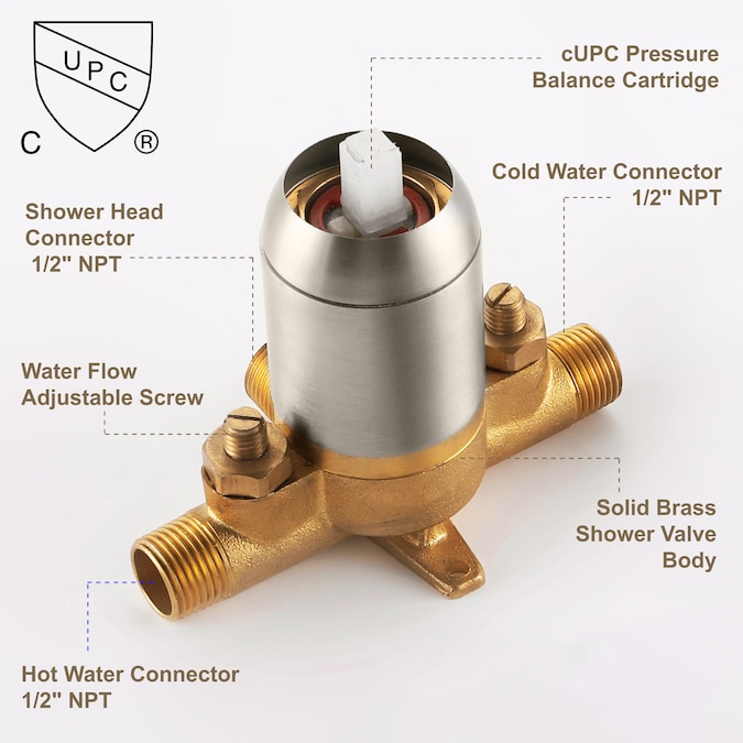 - Max Flow Rate (Showerhead): 2.5 GPM (9.5 LPM)