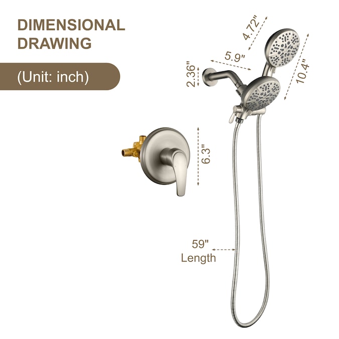 After you finish your day’s schedule, taking a bath may make you feel more relaxed. Using this simple 2 in 1 shower faucet kit to relieve your fatigue of the day. Advanced pressure-balanced ceramic disc filter element balances the high-pressure water supply and provides a stable water flow. High-quality ABS shower head adopts multi-layer processing brushed nickel finish, with a simple and smooth appearance. The nozzle is easy to wipe and the surface is anti-fouling, making the shower kit durable and easy to maintain. Pre-embedded box installation technology makes your bathroom more precise.