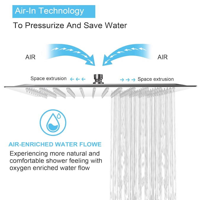 - Large rain shower head: ultra-thin and modern 16-inch large square rainfall shower head with full body coverage, get you full body dynamic water massage