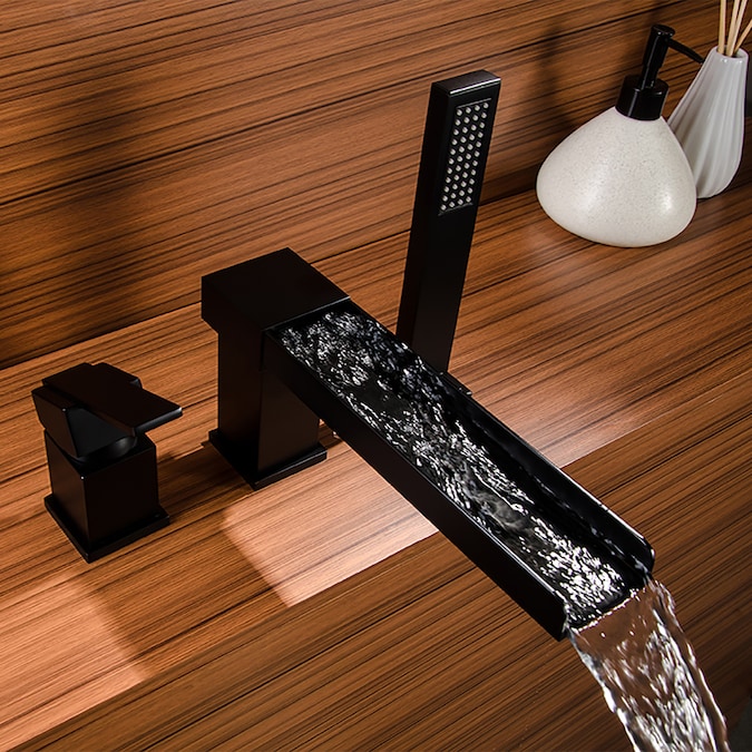 This waterfall bathtub filler with modern, chic styling will endow you with a fabulous, relaxing bathing time while giving a new dimension to your bathroom. Constructed from lead-free solid brass, this tub faucet is made for safe and long-lasting service. Come with an extended trough-style spout, it creates a soothing waterfall effect when filling your tub quickly for a comfortable soak. A hand shower with a flexible hose offers a large motion to aim at a specific place. It will elevate your soaking experience.