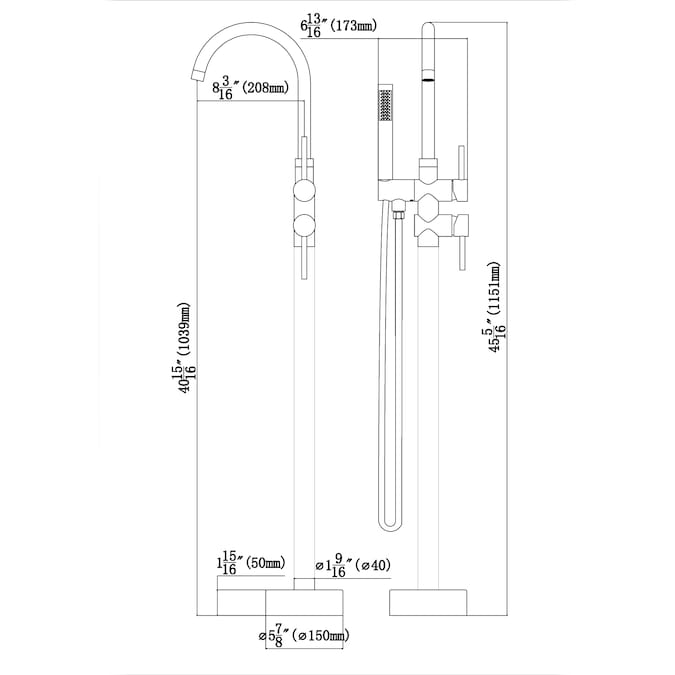 - The free-standing faucet can be installed directly on the floor