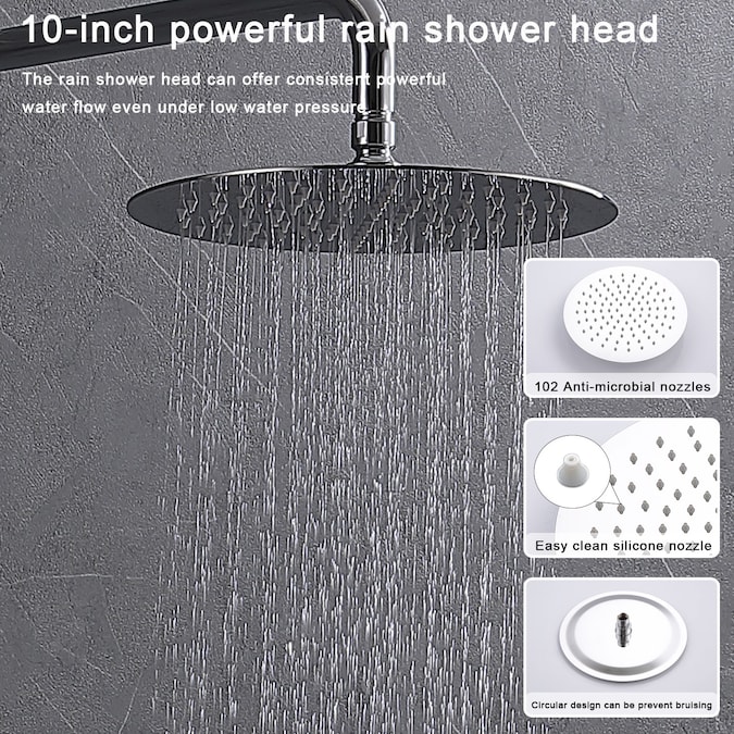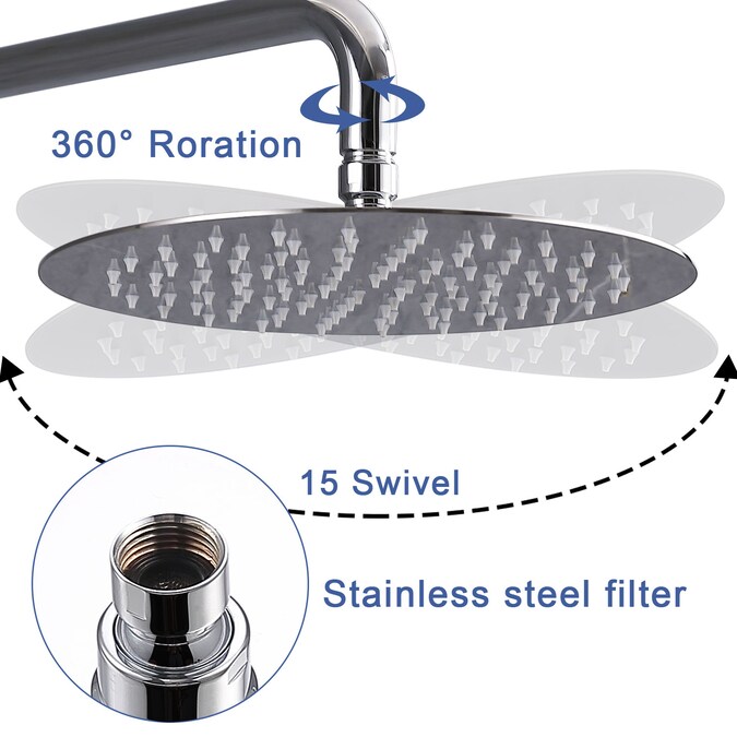 • Oversized a10-inch SUS 304 stainless steel round shower head is large enough to cover your whole body