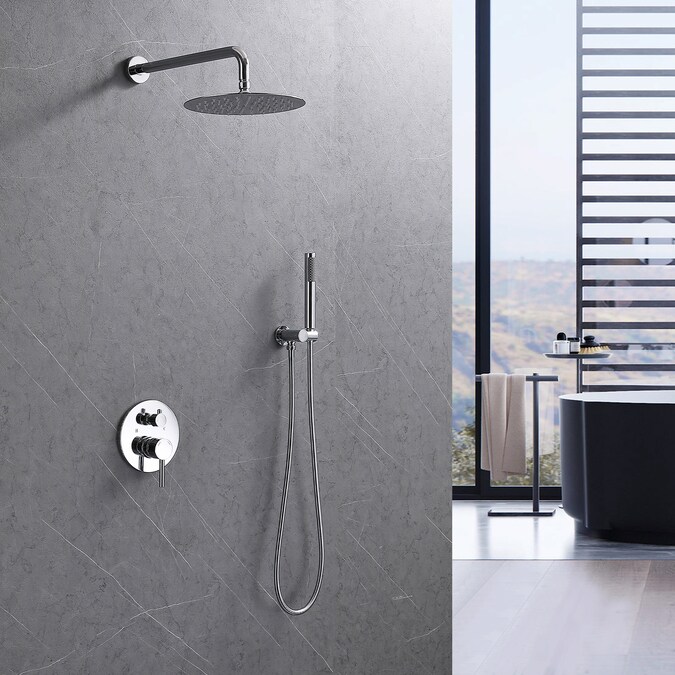 WELLFOR Polished Chrome 10-in Waterfall Dual Head Built-In Shower Faucet System with 2-way Diverter (Pressure-balanced Valve Included)