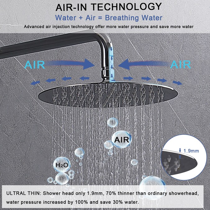 Taking a shower can be a way to relax yourself or as an enjoyment in daily life. Relax your whole body with this rain shower system. Crafted with solid brass and stainless steel for durability and reliability. Adopt innovative air injection technology offer consistent powerful rain even under low pressure conditions. The showerhead positioned above you simulates the feeling of a rainfall cascading down to you that you will feel every drop of water trickle on you calmly and make you more relaxed when you take a shower. Two shower modes you can choose freely, just simply switch the direction of the knob above the single handle.