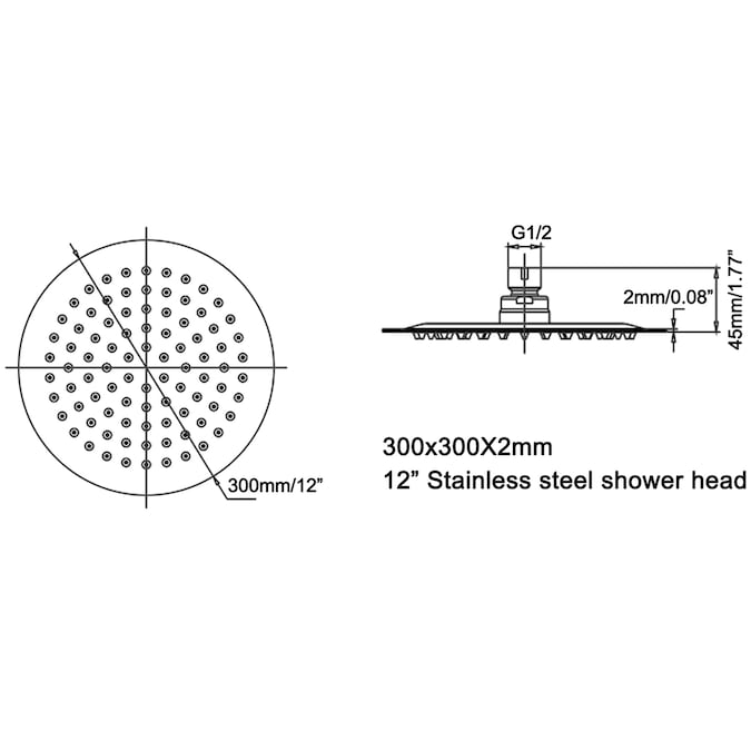 - Shower Head Diameter (Inches): 12