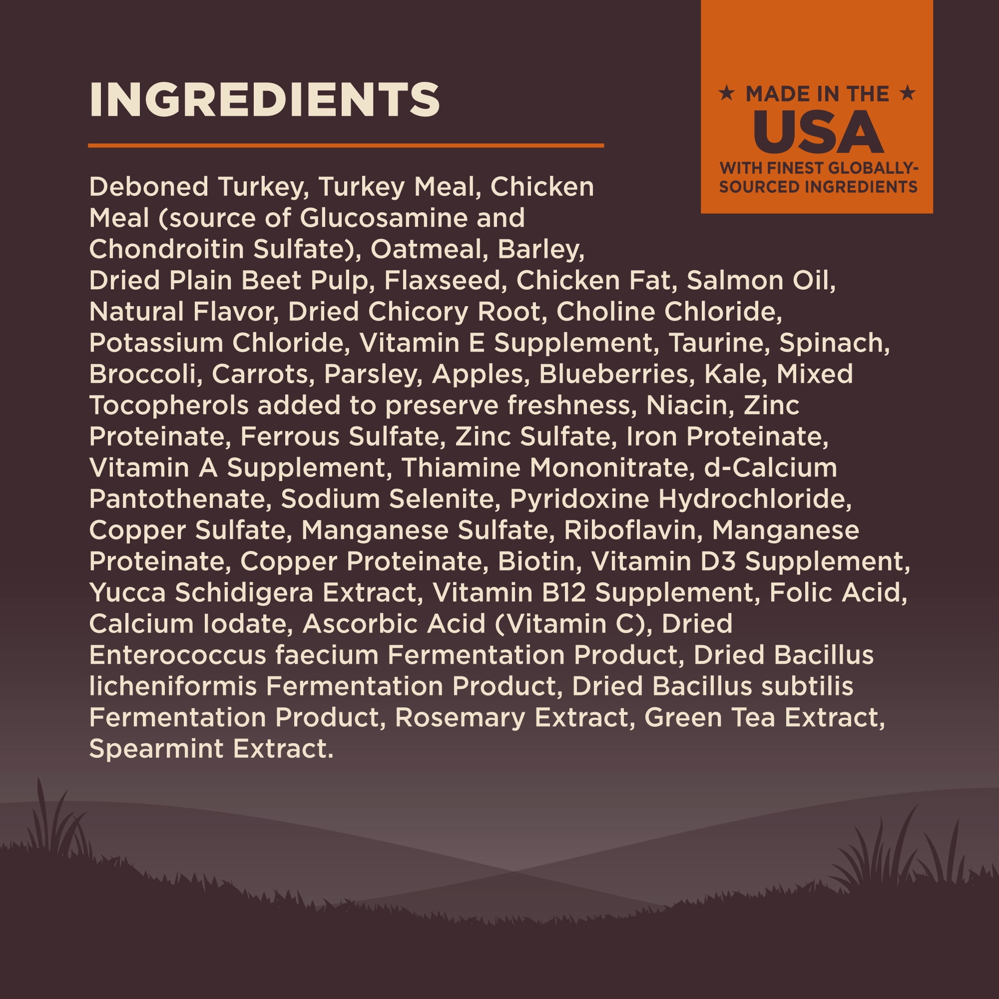 ALL NATURAL SMALL BREED ADULT DRY DOG FOOD: Premium protein from responsibly sourced turkey is expertly balanced with nutrient rich superfoods for a complete and balanced dog food, with optimal fat and calorie levels your dog needs to thrive. LEANER BODY MASS AND MUSCLE TONE: Based on the nutritional philosophy that dogs thrive on a natural diet mainly comprised of meat, this dog food is made with 36% high quality protein ingredients. SUPPORTS DIGESTIVE HEALTH & STRONG JOINTS: Guaranteed levels of omega fatty to support healthy skin and coat, glucosamine for strong joints, high fiber and probiotics for digestive health, and taurine for a healthy heart. NO CORN, WHEAT, OR SOY: Contains only premium, all natural ingredients with no poultry by-products, wheat, wheat gluten, corn, soy, artificial colors, or preservatives. GLOBALLY SOURCED INGREDIENTS: We prepare each of our diets in our own state of the art facility; recipes crafted with wholesome, non-GMO ingredients chosen for their nutritional benefits. Available Product Sizes: 4 Pound Bag, 12 Pound Bag