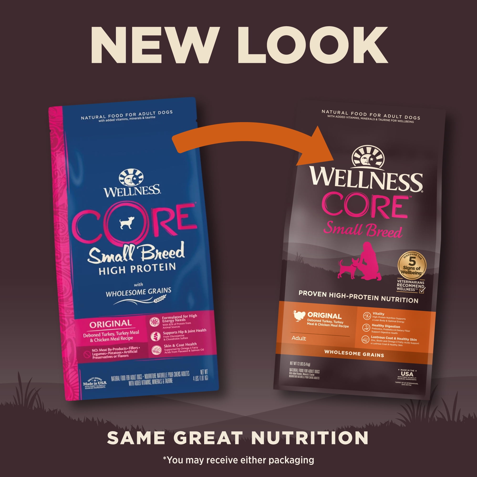 Mealtime is more than a bowl of food. It’s the foundation for a long and healthy life. Wellness CORE recipes are thoughtfully crafted and scientifically proven to support the five signs of wellbeing. Every recipe is rich in protein and uses high-quality ingredients to support whole-body health so that you and your dog can share a lifetime of wellbeing together. ADVANCED NATURAL NUTRITION TO FUEL YOUR DOG’S BEST LIFE: Premium protein expertly balanced with nutrient rich superfoods for a complete and balanced dog food, with guaranteed levels of all the nutrients your small breed dog needs to thrive. SAVORY FOOD DOGS LOVE – Wellness CORE is available in grain and grain free recipes, as well as limited ingredient diets for dogs with food sensitivities. WHOLE BODY HEALTH – Supported by omega fatty acids, antioxidants, glucosamine, probiotics and taurine for a healthy heart. Made using only the finest globally sourced ingredients.
