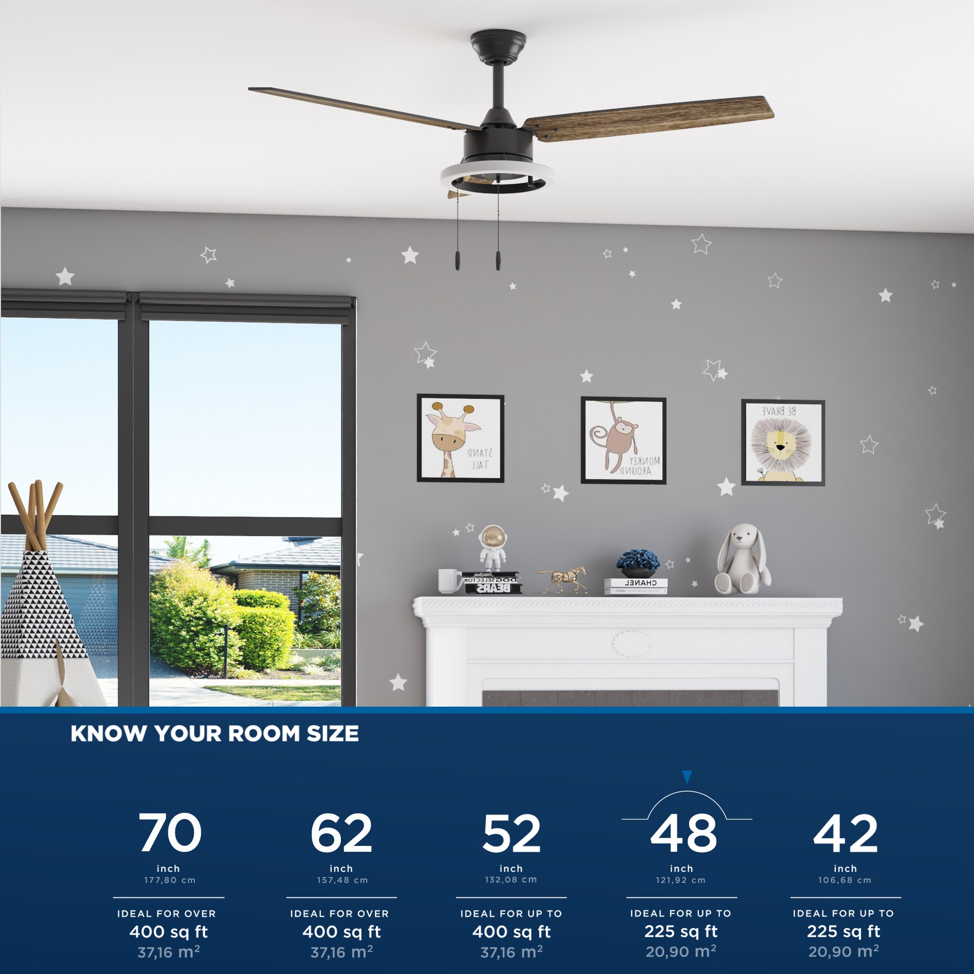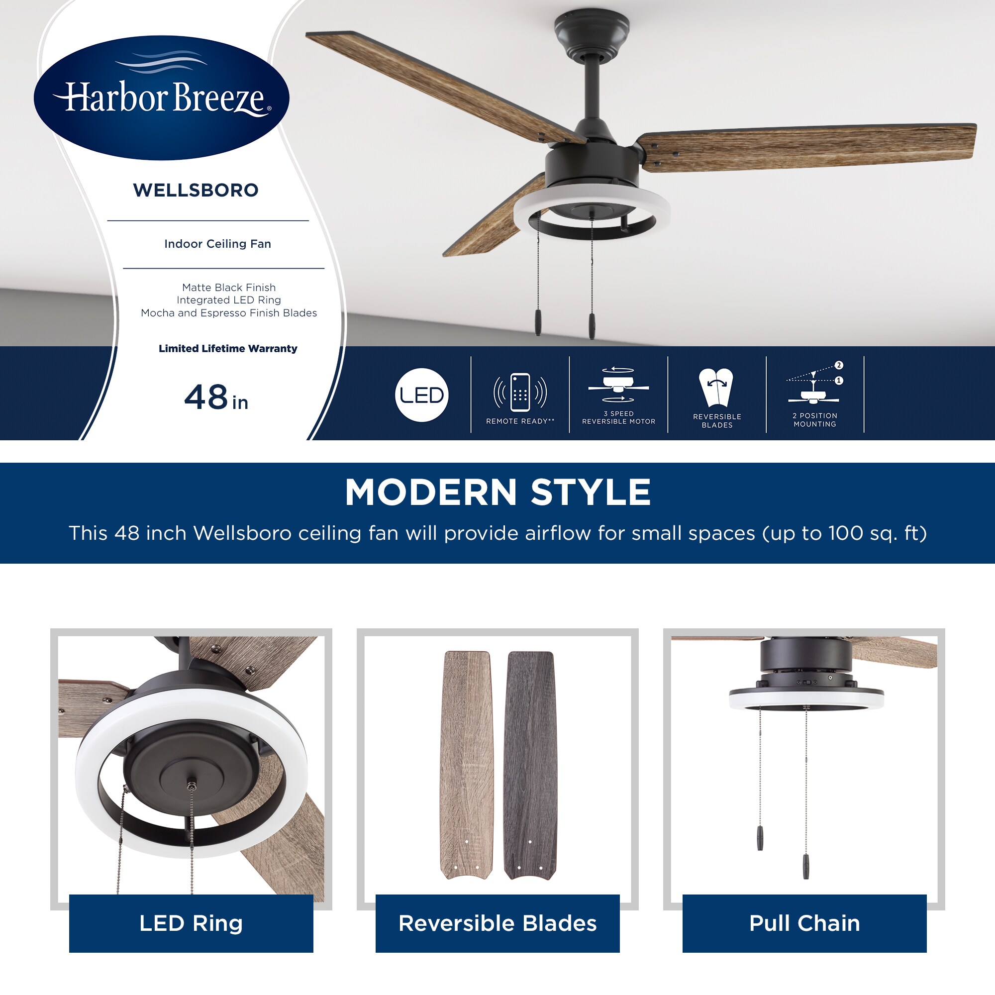 48 inch ceiling fan with LED ring light and 3 reversible blades