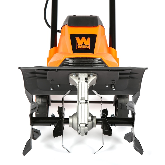Remember when you could cultivate the world? Get a license to till with the WEN Electric Tiller. The 10-amp motor rotates the four steel tines up to 360 times per minute, properly softening and turning your dirt to prep for planting and gardening. Till soil up to 14 inches wide and 8.7 inches deep. The dual-handle system helps maximize control during navigation and turns. Our 5-5/8-inch wheels’ position is easily adjusted with the pull of a pin, and coupled with the collapsible design, makes for easy transport and storage between uses. Overload protection automatically stops the motor during contact with hard rocks, concrete, and other immovable objects, preventing damage to the tiller and the blades. And because it’s a WEN product, your tiller comes backed by a two-year warranty, a helpful customer service line, and a stocked inventory of replacement parts, all to make sure you remember WEN.
