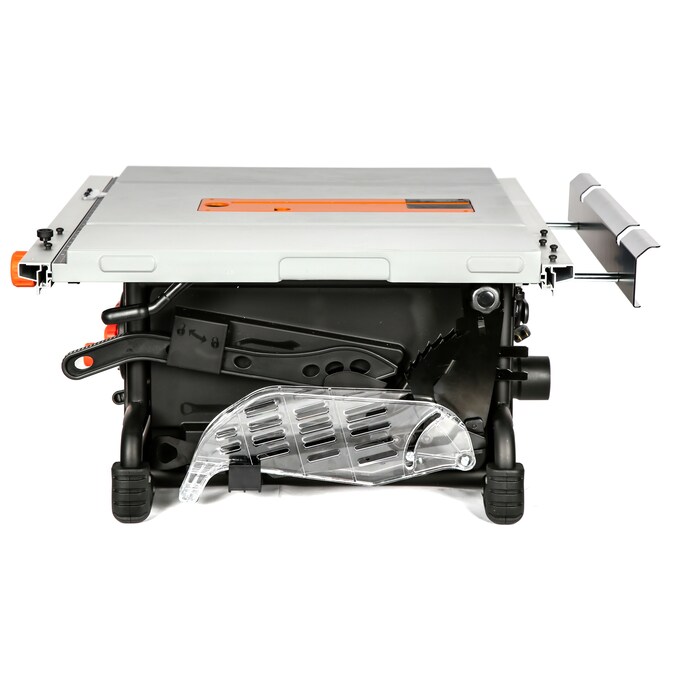 - Includes an adjustable narrow-rip fence, table extension rest, miter gauge, push stick, 2-1/2-inch dust port, tool-free blade guard, riving knife, onboard storage, and a two-year warranty