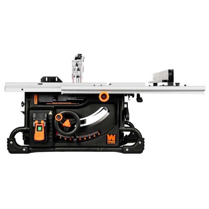 Remember when you had the power of a table saw whenever and wherever you needed it. The WEN 15-Amp 10-Inch Benchtop and Jobsite Table Saw provides a compact, portable solution for making straight, long cuts on larger workpieces. Our spacious die-cast-aluminum table extends out for a rip-cut capacity of up to 28-3/4 inches to the right of the blade with a rack-and-pinion, cam-locking adjustment mechanism for precision woodworking. This makes for the perfect saw for ripping 4×8 plywood or OSB sheets. The height adjustment wheel easily adjusts the height of the exposed blade anywhere from 0 to 3-1/8 inches. The angle of the blade can also be adjusted for bevel cuts up to 2-1/4 inches thick at 45 degrees. The tool-free blade guard can be easily installed or removed as needed, while the extension arm and rear support increase the 26-1/4 by 22-inch table all the way out to 41-3/4 by 32-1/4 inches in size. The housing measures in with a footprint of 26-1/2 by 20 inches, and includes solid rubber feet to minimize vibration. These feet also double as side carrying handles for easy transportation and storage between uses. The WEN Benchtop Table Saw also includes a WEN BL1040 10-Inch 40T TCT blade with 5/8-inch arbor, an adjustable rip fence with narrow-rip attachment, a table extension rest, a miter gauge, a push stick, an onboard 2-1/2-inch dust port, a riving knife to limit kickback, a blade wrench, and onboard storage for easy organization. Compatible with the WEN TT1015-DADO dado throat plate and BL088D 8-Inch Dado Blade Set. And because it’s a WEN product, your table saw also comes backed by a two-year warranty, a helpful customer phone line, and a stocked inventory of replacement parts. Remember when you had a saw that could really rip. Remember WEN.