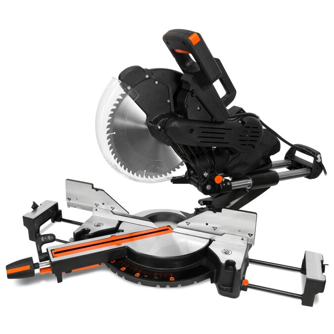 Create cuts at any angle with the WEN 12 in. Dual Bevel Sliding Compound Miter Saw. Our powerful 15 Amp motor slices through even the hardest of woods, providing 3800 blade rotations per minute. This versatile saw bevels and miters up to 45° in either direction with a front bevel control for fast and easy adjustment. Cut boards up to 13-3/8 in. W and 3-1/2 in. thick or make compound cuts (45° bevel and 45° m) in boards 9-1/2 in. W and 2-1/8 in. thick. The saw features 9 m stops: 2 at 15°, 2 at 22.5°, 2 at 30°, 2 at 45° and 1 at 0. However, if a more unique angle is preferred, the miter lock still allows the saw to lock at any angle between those stops. This spacious saw also features a 7-1/2 in. Crown molding nested capacity and a 6-3/4 in. Base board vertical capacity. This package also includes a 12 in. 60-tooth carbide-tipped blade (with 1 in. arbor), 2 retractable table extensions with work stops, 1 clamp assembly, a class II laser guide, an LED work light and a dust bag. The onboard laser illuminates the line of cut for maximum accuracy while the LED work light brightens your work area for easy sawing. The spacious table features 2 adjustable extensions to increase the maximum work capacity up to 38 in. The dust collection port allows for connection to either the included dust bag or your dust collection device of choice. Backed by a 2-year warranty.