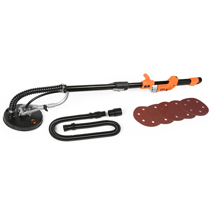 Remember when you could sand those hard-to-reach places? The WEN Variable Speed Drywall Sander goes where no sander has gone before. With a pivoting 8.5-inch head that swivels in all directions, the WEN Drywall Sander automatically adjusts to be flush against almost any surface that crosses its path. The 6.3-amp motor is mounted in the middle of the sander to decrease the weight of the sanding head and improve the sander’s balance. Our unique lockable head design maximizes suction, allowing the sander to adhere firmly to the drywall. Both of these features help limit fatigue during operation, making this the perfect drywall sander for sanding ceilings and high walls. Adjust the speed anywhere from 1000 to 2450 RPM to meet the needs of the project at hand. The hook-and-loop base pad makes sandpaper changes a breeze. This package includes six pieces of 9-inch hook and loop sandpaper discs (60, 80, 120, 150, 180 and 240 grit), along with a flexible dust vacuum hose for reliable dust removal. The improved hole configuration places the sandpaper holes directly below the included 15-foot dust hose, maximizing dust collection and minimizing cleanup. NOTE: only compatible with replacement sandpaper models DW60SP, DW80SP, DW120SP, DW150SP, DW240SP, and DW400SP. This drywall sander measures in at 64.5 x 11.5 x 10.25 inches in size, with a weight of 10.3 pounds, and collapses in seconds for easy transport or storage. And because it’s a WEN product, your variable speed drywall sander comes backed by a two-year warranty, a stocked inventory of replacement parts, and a friendly customer helpline. Remember when you could reach the unreachable? Remember WEN.