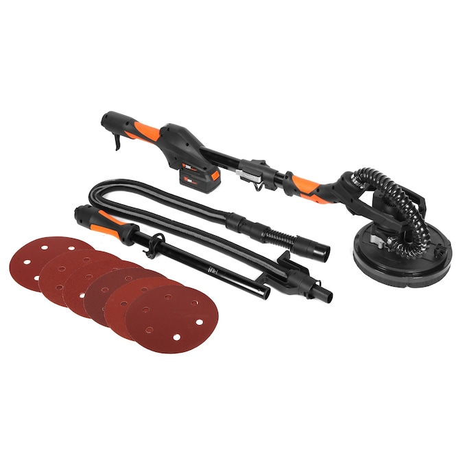 Remember when you could sand those hard-to-reach places? The WEN 20V Max Cordless Drywall Sander goes where no sander has gone before. With a pivoting 8.5-inch head that swivels in all directions, the WEN Drywall Sander automatically adjusts to be flush against every surface that crosses its path. Adjust the speed anywhere from 600 to 1200 RPM to meet the needs of the project at hand. The hook-and-loop base pad makes sandpaper changes a breeze, while the foldable design allows for simple storage and transportation. The lightweight 7.5-pound body goes from 43.3 inches to 63 inches in length for maximum versatility. Combine that with its cordless operation for a drywall sander that truly reaches wherever you need it to. This package also includes six pieces of hook-and-loop sandpaper disks (60, 80, 120, 150, 180 and 240 grit) along with a flexible vacuum hose that stretches up to 15 feet for reliable dust removal. The improved hole configuration places the sandpaper holes directly below the dust hose, maximizing dust collection and minimizing cleanup. NOTE: only compatible with replacement sandpaper models DW60SP, DW80SP, DW120SP, DW150SP, DW240SP, and DW400SP. The included 5.0 amp-hour lithium-ion battery delivers consistently powerful performance at any level of charge, features an onboard LED charge gauge, and is cross-compatible with the entire WEN 20V Max Cordless Lithium-Ion Power Tool line. And because it’s a WEN product, your variable speed drywall sander comes backed by a two-year warranty, a stocked inventory of replacement parts, and a friendly customer helpline. Remember when you could reach the unreachable? Remember WEN.