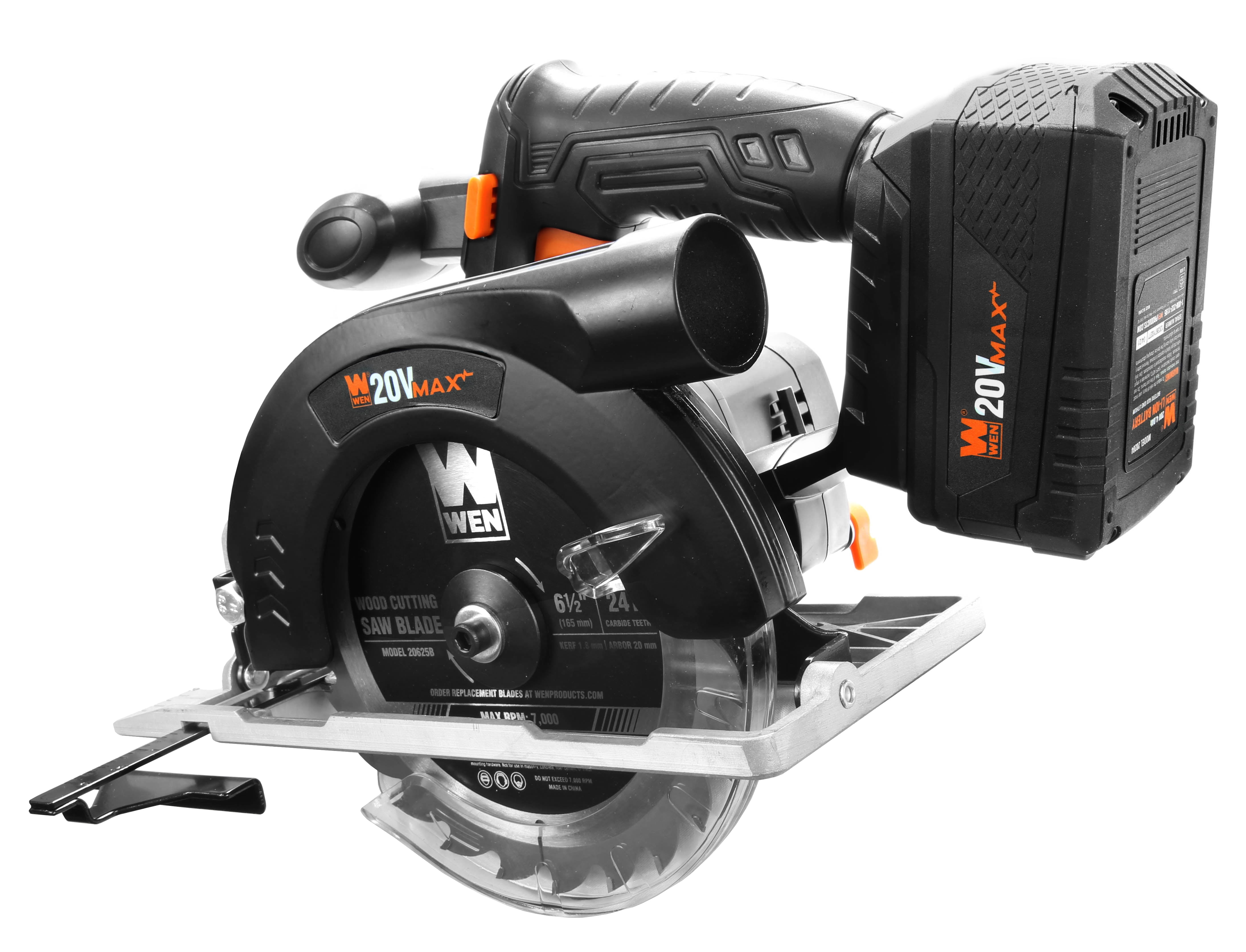 Remember when you had a well-balanced and lightweight circular saw. Sink your teeth into a variety of woodworking projects with the WEN 20V Max Cordless Circular Saw. Attack boards up to 2.2 inches thick at 90 degrees, or bevel from 0 to 45 degrees to make angled cuts in boards up to 1.6 inches thick. The blade guard automatically retracts during operation for maximum safety between cuts. The compact sidewinder design making both storage and transportation easier than ever. This package also includes a 6.5-inch 24-tooth carbide-tipped saw blade with a 20mm arbour, a handy rip guide that adjusts anywhere from 0 to 8 inches, onboard tool storage, a 1.5-inch dust port, and a 2-amp battery charger. And because it’s a WEN product, your circular saw comes backed by a two-year warranty, a stocked inventory of replacement parts and all to make sure you remember WEN.