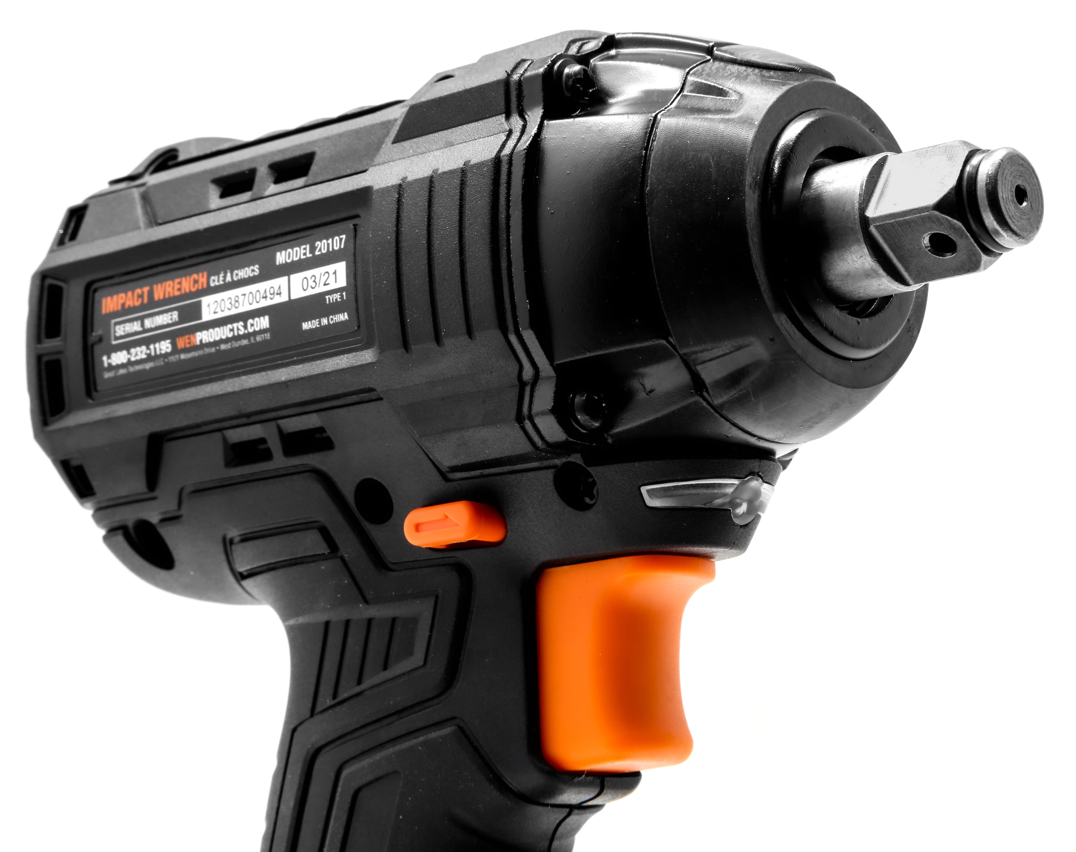 Remember when you weren’t bound by cords. Make an impact with the WEN 20V Max Cordless Brushless Impact Wrench. This powerful yet compact tool delivers up to 2480 inch-pounds of fastening and breakaway torque, and features a brushless motor for more runtime, better performance. Our compact design measures in at 3.4 pounds and 6.5 inches in length for easy access to hard-to-reach nuts and bolts. The 1/2-inch square hog ring anvil allows for compatibility with the majority of impact sockets on the market. This wrench also features an LED work light for increased visibility, an ergonomic handle, a belt hook for easy transport, a wrist strap for safe handling, and a 2-amp battery charger. And because it’s a WEN product, your cordless impact wrench comes backed by a two-year warranty, a stocked inventory of replacement parts and all to make sure you remember WEN.