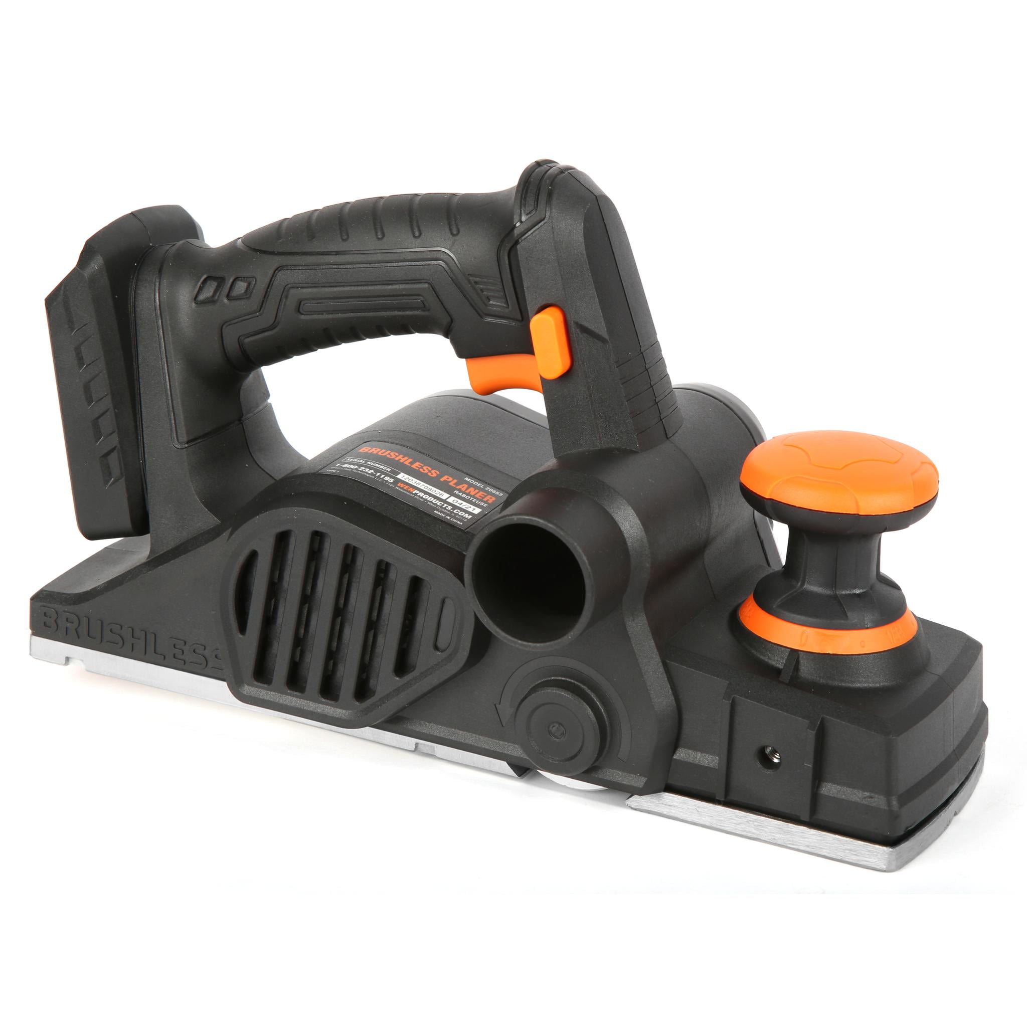 Remember when you weren’t bound by a cord? Plane away chips, splinters and misshapen edges with the WEN 20V Max Brushless Cordless Hand Planer. Perfect for fixing stubborn doors and fitting wood, this planer delivers up to 26000 cuts per minute to your workpiece, slicing away any irregularities until the surface of your boards are aligned and smooth. The brushless motor provides more runtime and better performance, and lasts longer with less maintenance than brushed alternatives. With a cutting width of 3-1/4 inches, you’ll have the perfect companion for fitting and squaring boards. A simple turn of the front knob lets you easily adjust cutting depth up to 1/8 inch, with positive stops every 1/128 inch. The base plate shoe even includes a V-shaped groove for even, smooth bevel and chamfer cuts. The included rabbeting guide adjusts anywhere from 0 to 11/16 inches to allow for rabbets up to an inch deep. The parallel fence provides an accurate and straight cut by making sure your passes are directly parallel to the edge of the wood (a must-have for planing door edges, wood trim and boards). The kickstand protects both the blade and the workpiece in between uses by keeping the blade elevated from the surface of your project. Finally, the dust bag collects all of your loose shavings to keep your workspace clean and sawdust-free. Compatible with the entire line of WEN 20V Max Lithium-Ion batteries (models 20202, 20204, 20205) and chargers (models 20200C, 20201Q). And because it’s a WEN Product, your cordless hand planer comes backed by a two-year warranty, a stocked inventory of replacement parts, and a friendly customer help line, all to make sure you remember WEN.
