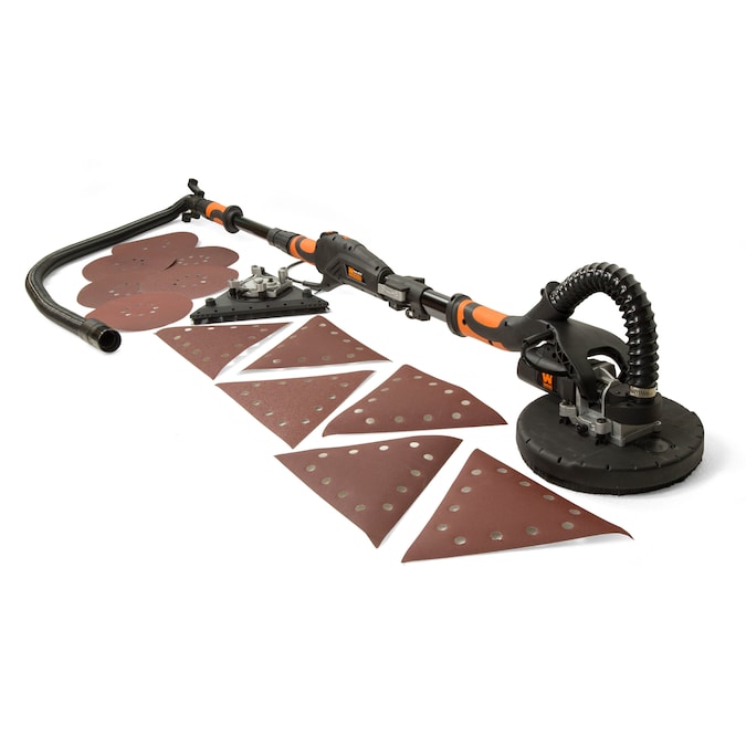 Remember when you had options for your drywall sander. Two heads are better than one with the WEN Variable Speed Dual-Head Drywall Sander. With a pivoting head that swivels in all directions, the WEN Drywall Sander automatically adjusts to be flush against every surface that crosses its path. Swap on either the circular head or the triangular head depending on the task at hand. Both heads easily detach and install without the aid of any outside tools. Simply slide back the release latch, pick the desired pad shape and get sanding. Adjust the speed anywhere from 600 to 1500 RPM to meet the needs of the project at hand. The hook and loop base pad makes sandpaper changes a breeze while the foldable design allows for simple storage and transportation. The lightweight 9 lbs. body telescopes to reach lengths up to five feet away. This package also includes six pieces of hook and loop sandpaper disks and six pieces of hook and loop triangular sandpaper (60, 80, 120, 150, 180 and 240 grit) along with a flexible dust vacuum hose that stretches up to 15 feet for reliable dust removal. And because it’s a WEN product, your Variable Speed Dual-Head Drywall Sander comes backed by a two-year warranty, a nationwide network of skilled service technicians and a friendly customer helpline.