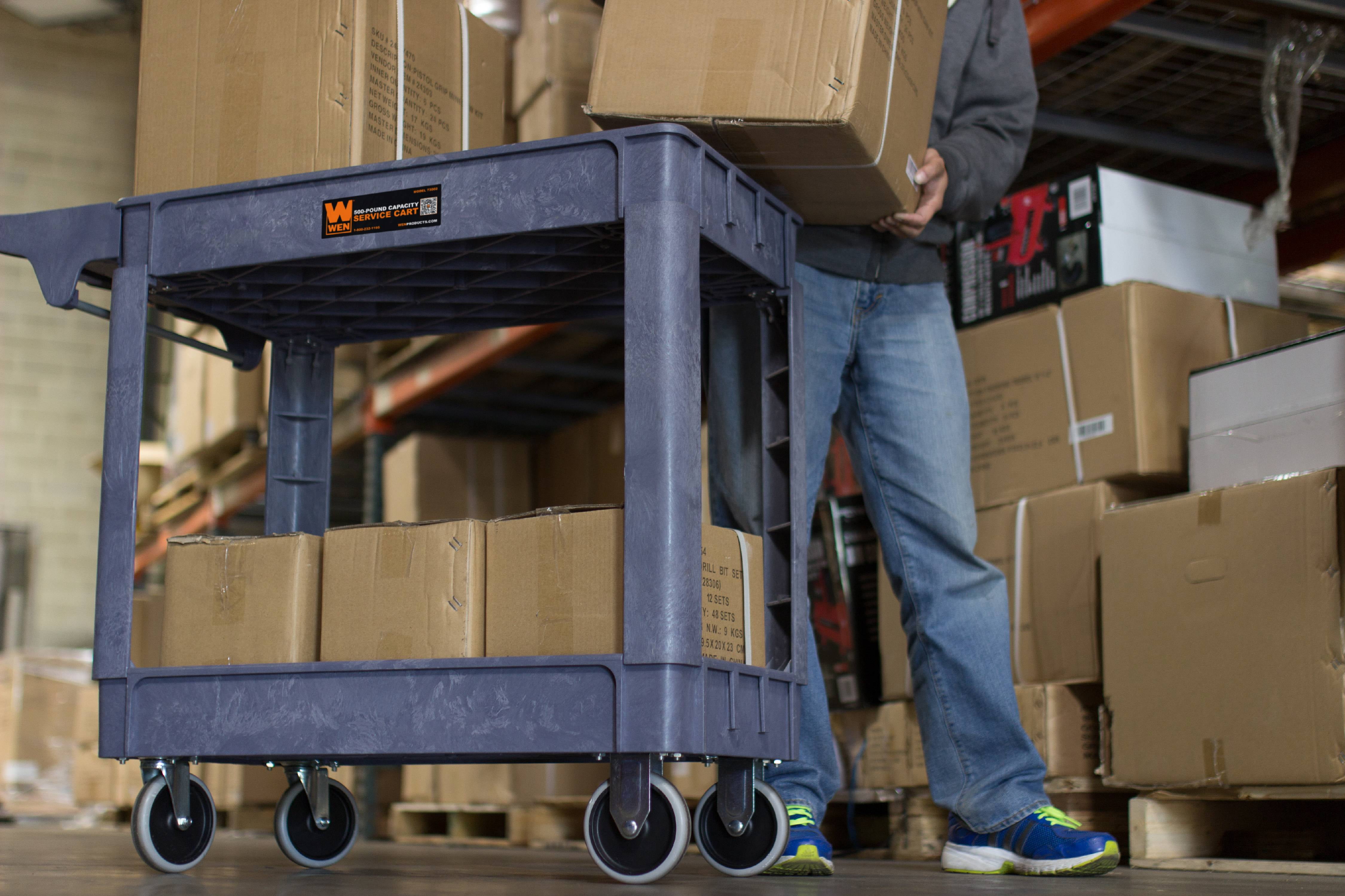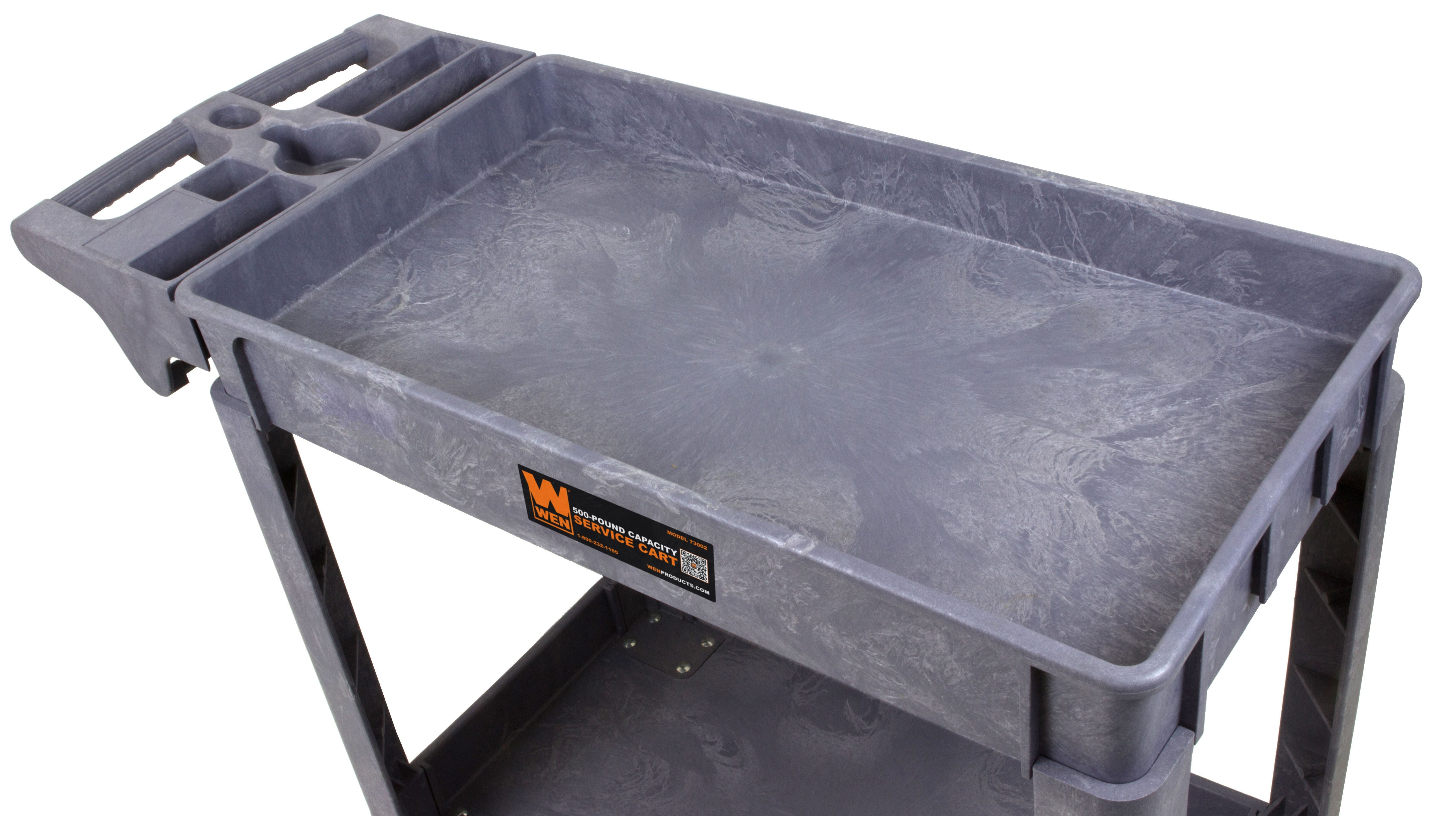 Avoid corrosion, rust and decay with an easy to clean and maintain surface Features two spacious 250-pound capacity, 30 by 16-inch shelves for everything you need on the job Includes 4 5-inch non-marring casters, a built-in handle, cupholder, towel rack, and five small storage compartments Made from premium industrial strength polypropylene ensures a long life and durability Universal utility cart is designed for any job or environment including the garage, office, home, and more Color: Grey Dimensions (L x W x H): 39.8 x 17 x 33.2 inches Weight: 35 pounds Manufacturer Warranty: 2 year limited / 90 days professional use
