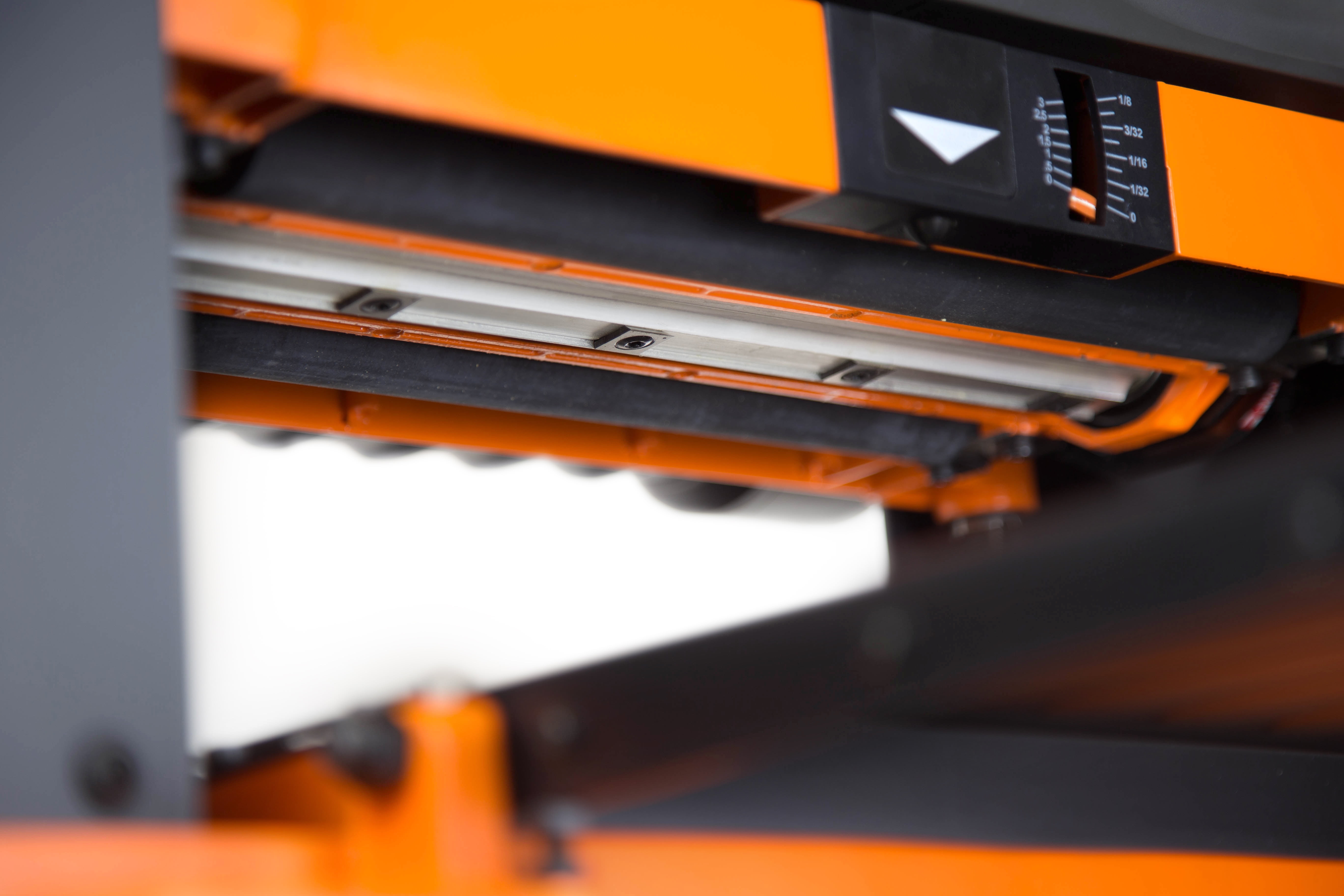 Spiral cutterhead utilizes 26 staggered and rotatable HSS blades for a clean, smooth finish Onboard material removal gauge informs users about the cutting depth of each pass Plane boards up to 6 inches thick and 13 inches wide 15A motor generates 10,000 RPM at a 26 feet per minute feed rate Includes a depth stop, an adjustable dust port, and a two-year warranty