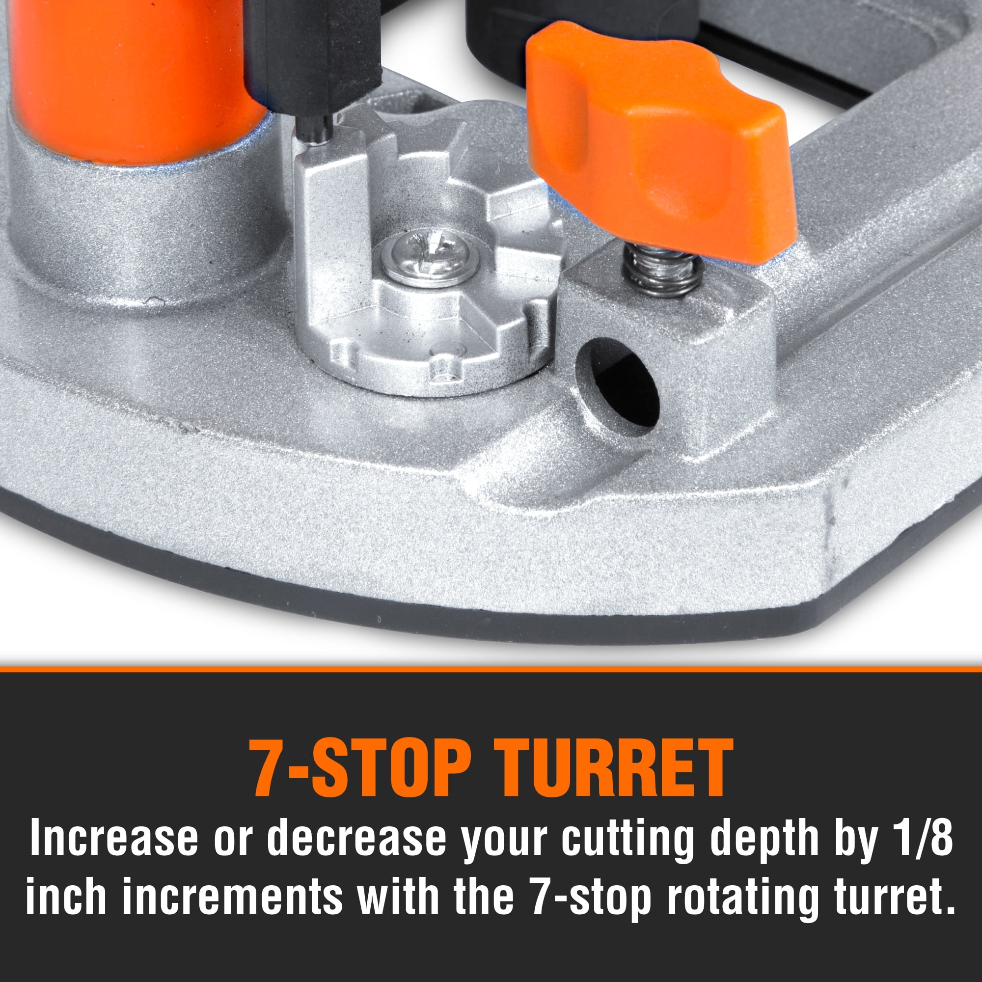 Plunging base locks in downward position for functionality as both a plunge and a fixed router Accepts both 1/4 and 1/2-inch router bits with a plunge depth of up to 2-3/8 inches 7-stop turret combined with both macro and micro-adjustment dials maximize precision