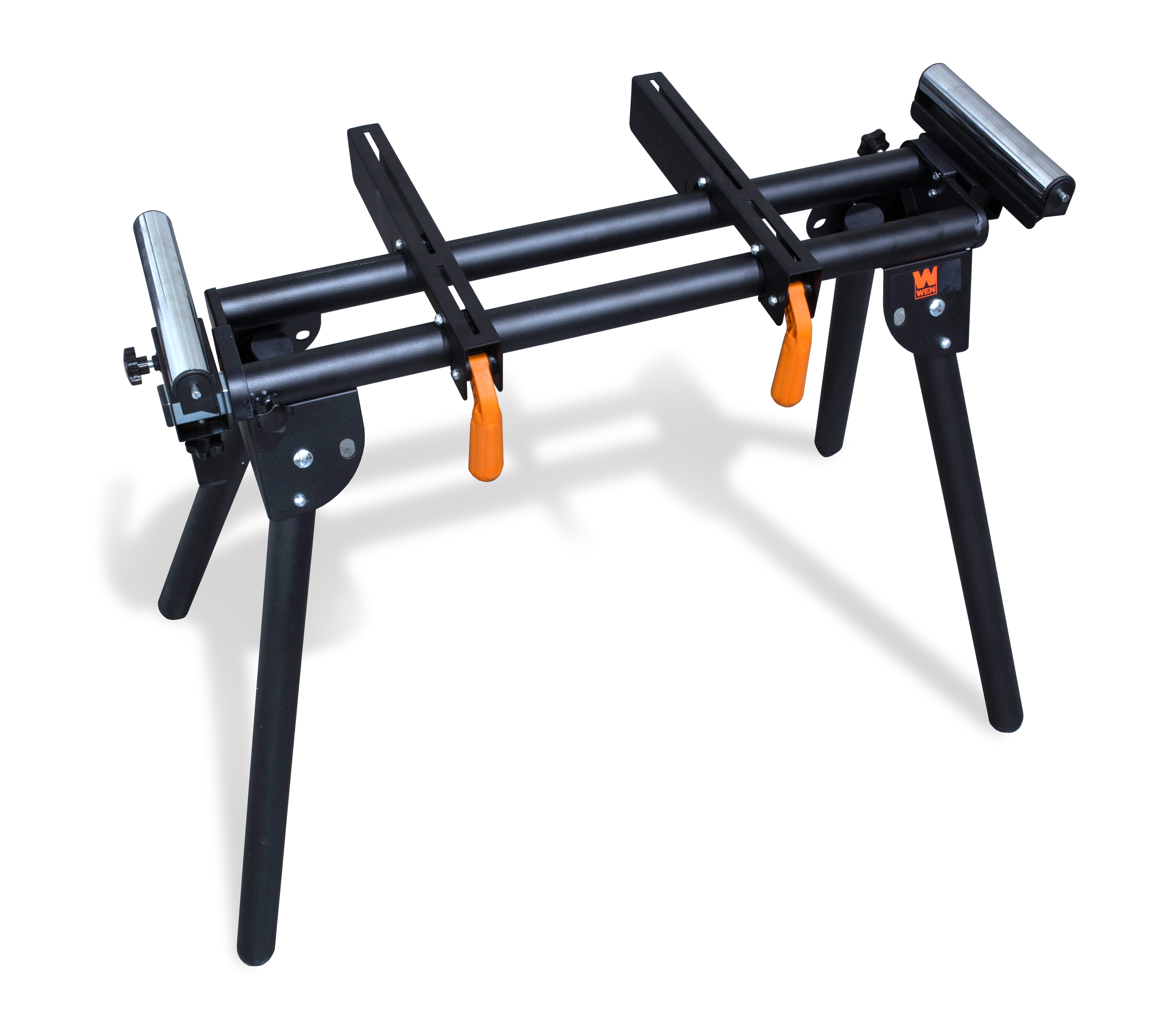 Remember when you could adequately support both your mitre saw and your workpiece? With the WEN 750-Pound Capacity Mitre Saw Stand, you’ll have a sturdy and reliable support system for all your sawing needs. The sliding arms extend anywhere from 34 to 69 inches in width, providing support for boards up to 10 feet long. Quick-release brackets tightly lock the mitre saw in place for simple installation and adjustments. The powder-coated steel frame prevents corrosion and marring to the body while the heavy-duty design folds into itself for easy transportation and storage between jobs. Adjust the height of the detachable rollers to best match the specific requirements of your project. Both rollers also operate as work stops, helping make consistent and even cuts every time. Including the entire WEN mitre saw series (models 70712, 70716, and 70725). If you want to know whether or not your particular mitre saw will fit onto the WEN 750-Pound Capacity Mitre Saw Stand, simply measure the distance between the front and back mounting holes. If this distance is less than 15 inches and on a centreline, the stand will fit. And because it’s a WEN product, your mitre saw stand comes backed by a two year warranty, a nationwide network of skilled service technicians and a friendly customer help line all to make sure you remember WEN.
