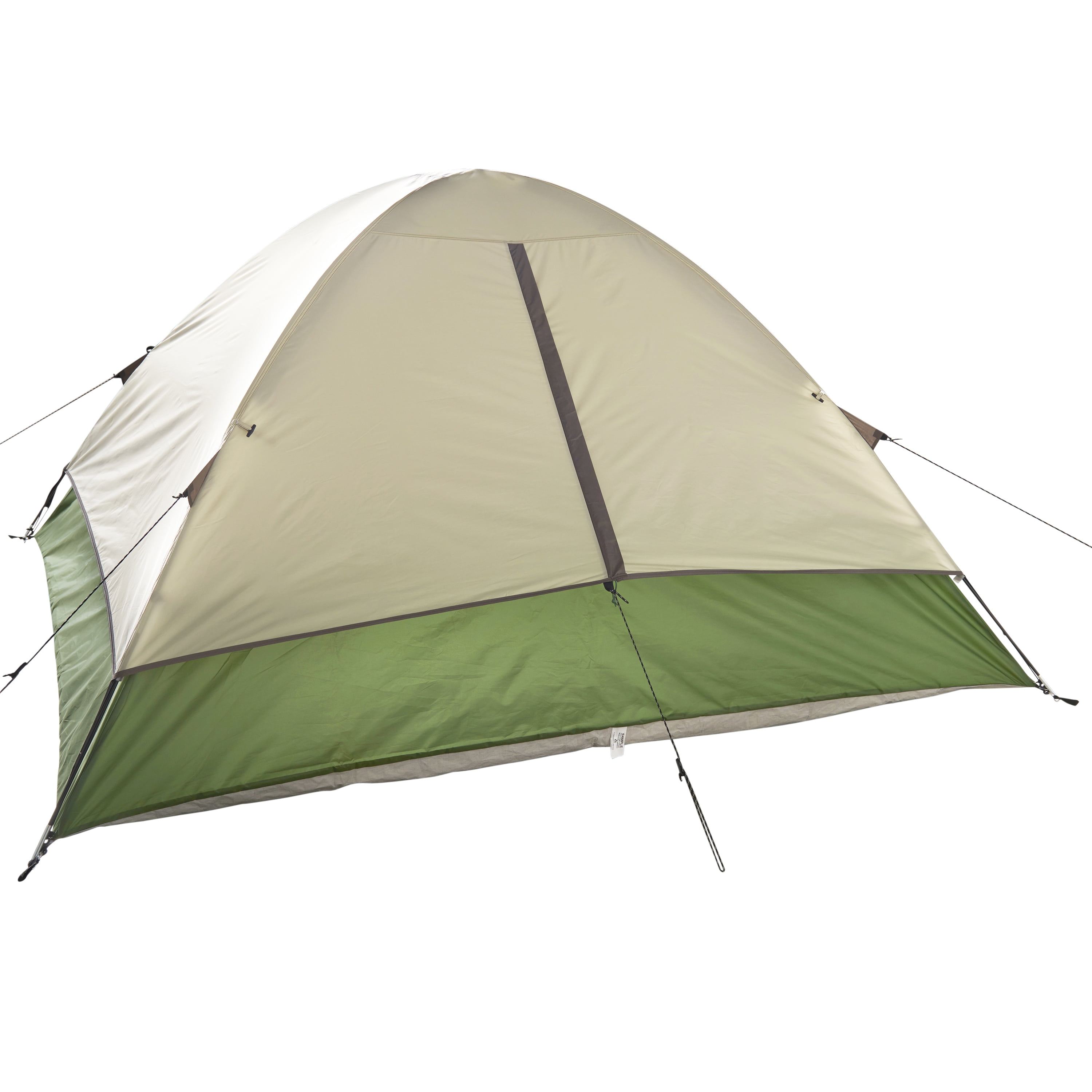 Wenzel Jack Pine 4-Person Dome Tent, Fern: “D”-style door with inside flap zippered window Shock-corded fiberglass frame with pin and ring attachment for easy setup Removable seam-sealed fly Vertical zipper on the back of the fly can be opened and rolled back for additional ventilation E-port for electrical cord access Gear loft and four convenience pockets for storage of small items Fly hoop pole creates an awning over the front door Mud mat at front door helps keep tent floor clean Pre-attached guy ropes for added stability