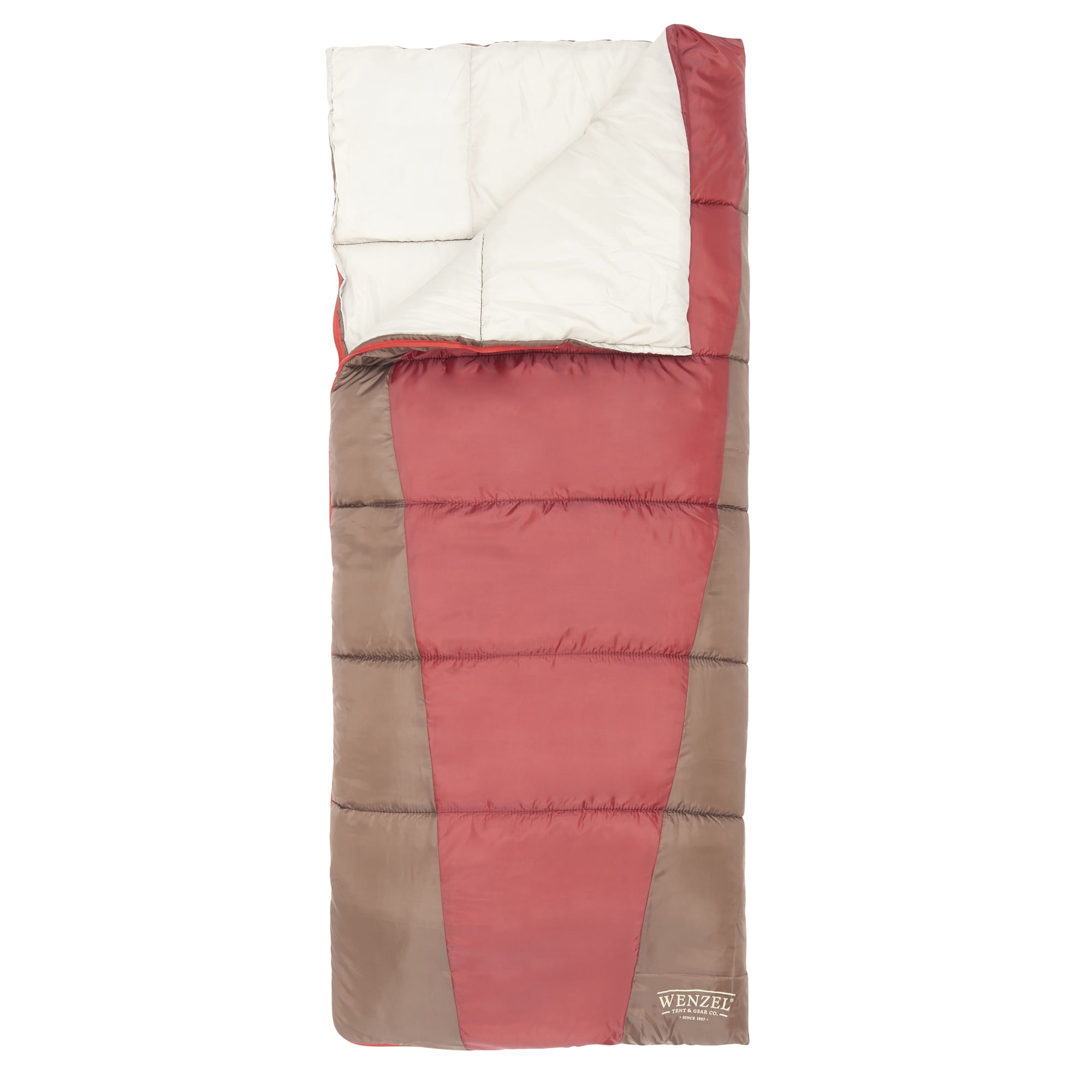 Wenzel Lakeside 40 – 50 Degree Rectangular Sleeping Bag, Red: Comfortable 33″ x 78″ fit Breathable fabrics maintains comfort through the night Soft polyester insulation locks in warmth Full-length zipper with insulated draft protection Double slider zipper offers versatile venting options 4lb 3oz carry weight Adult size sleeping bag
